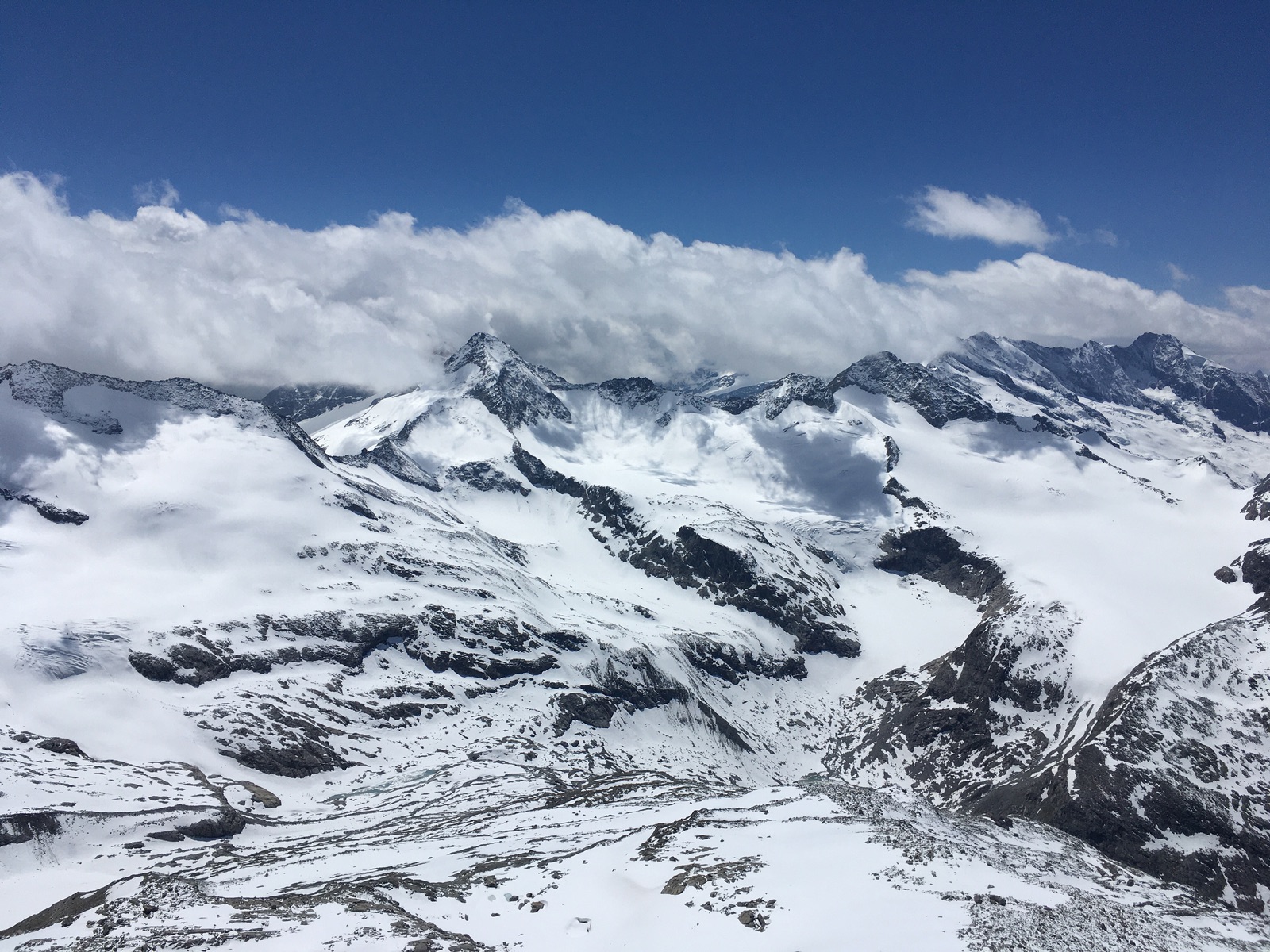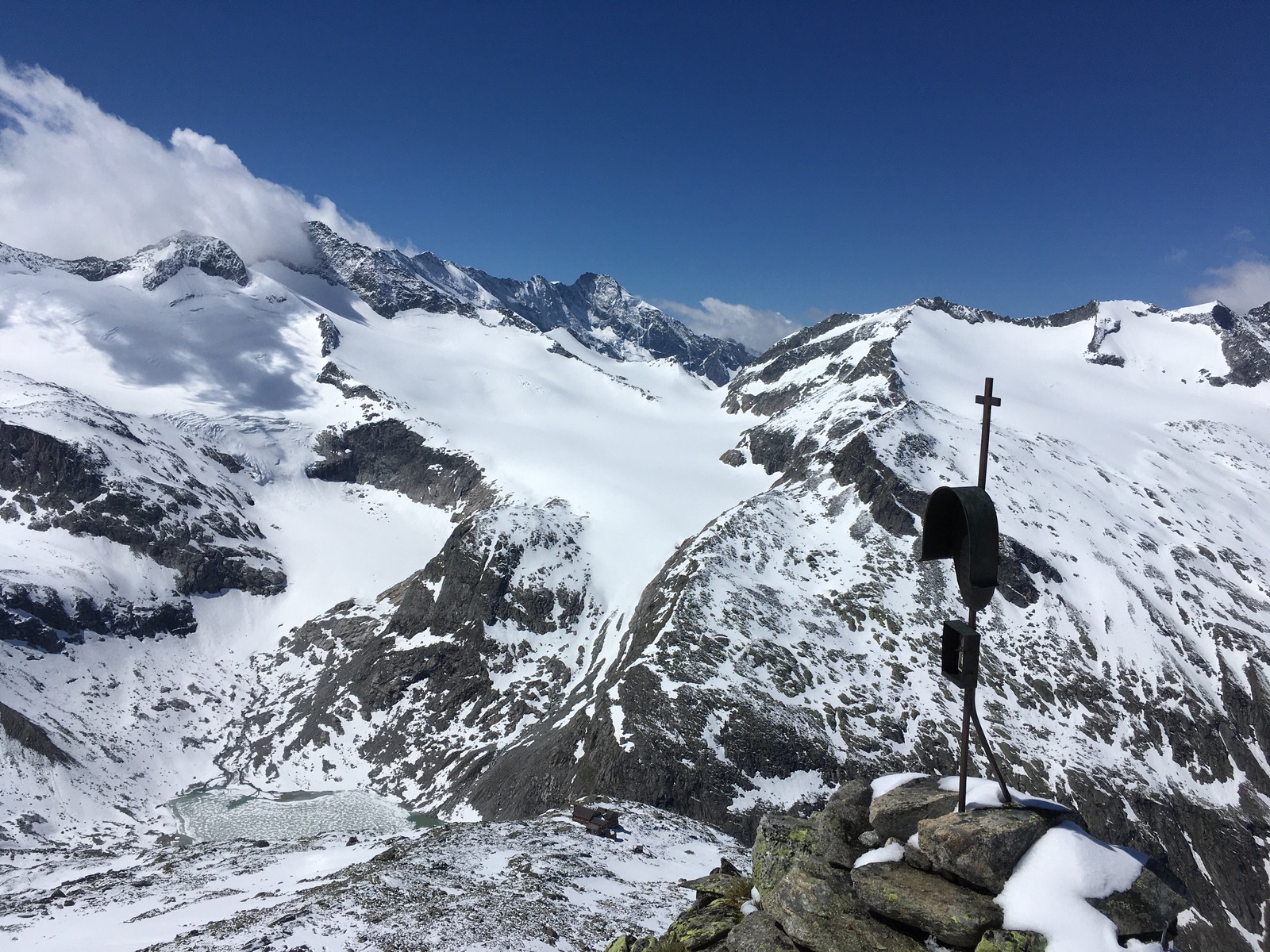 Blick vom Gipfel zum Krimmlertörl Kees mit der Dreiherrnspitze, Großer Geiger links: