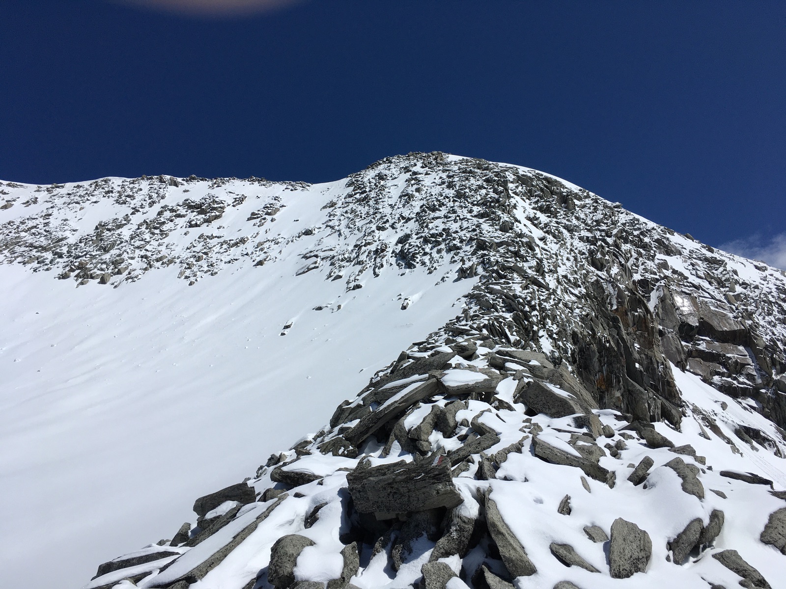 Der Blockgrat zum Gipfel - eigentlich unschwierig, aber mit Schnee mit Vorsicht zu genießen: