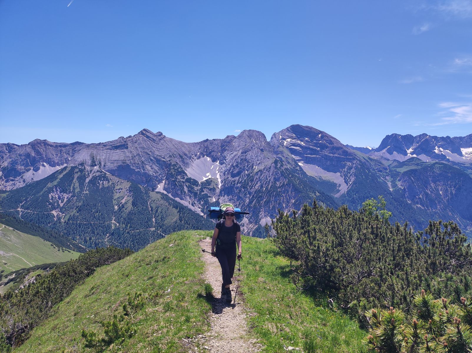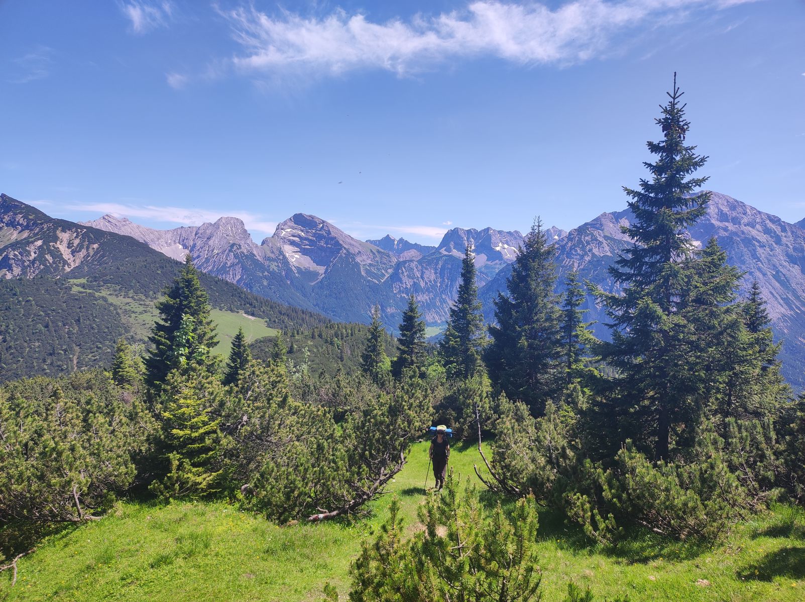 1: Am Kompar: Karwendelblick deluxe: Vom Ochsenkopf bis zur Lamsenspitze (Sonnjoch rechts der Mitte).