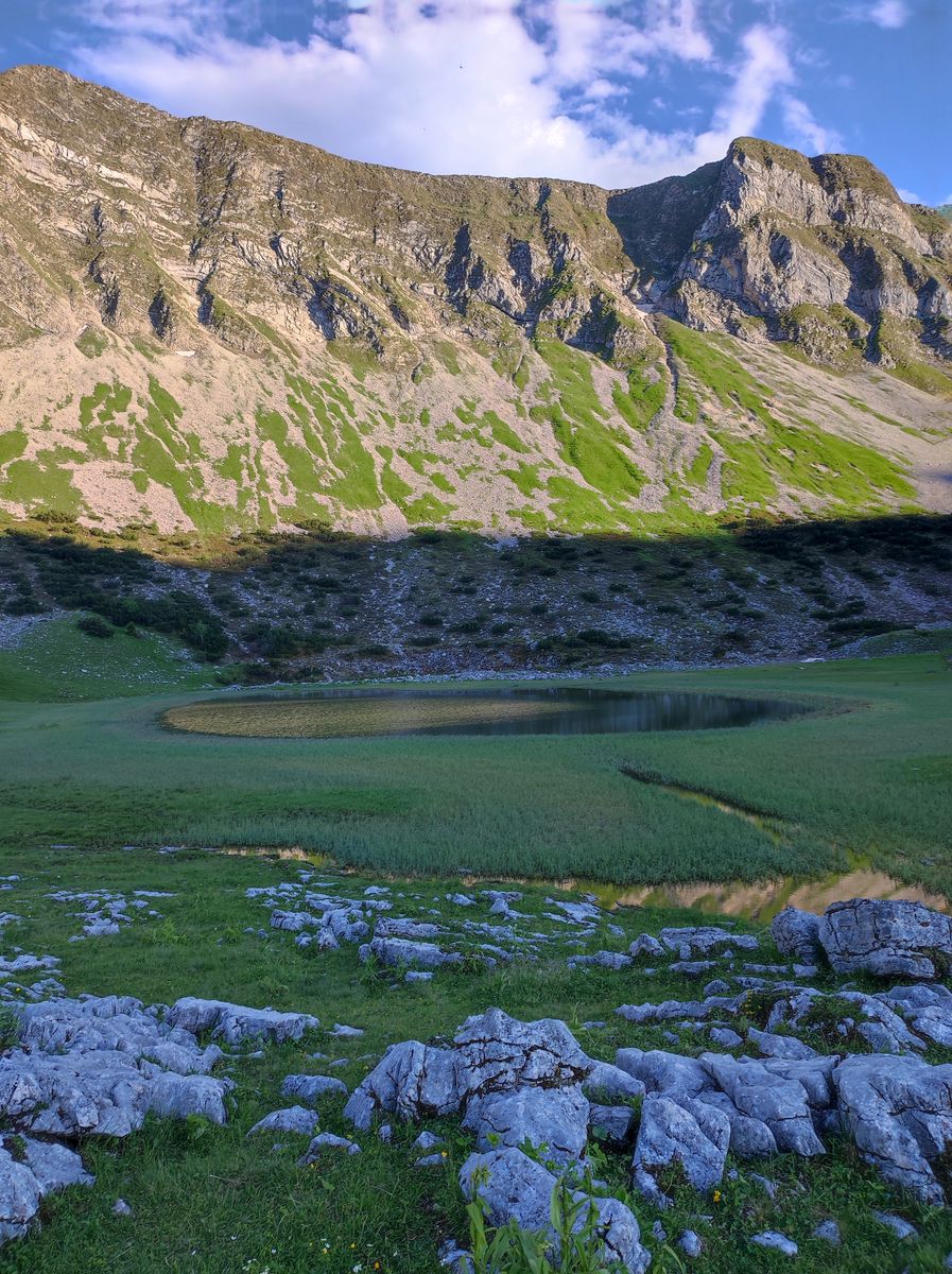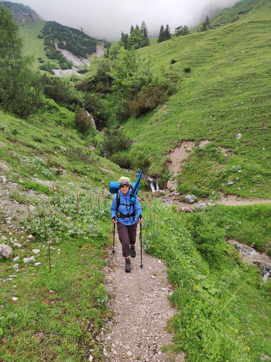 Tag 1: Gernalm - Plumsjochhütte - Satteljoch - Kompar - Grasbergalm - Hölzeltaljoch - Ochsentalalm - Baumgartenalm - Tölzer Hütte - Delps-See