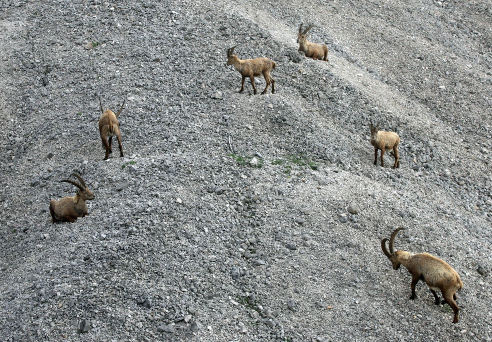 Auf dem Anstieg eine große Herde von Steinböcken.