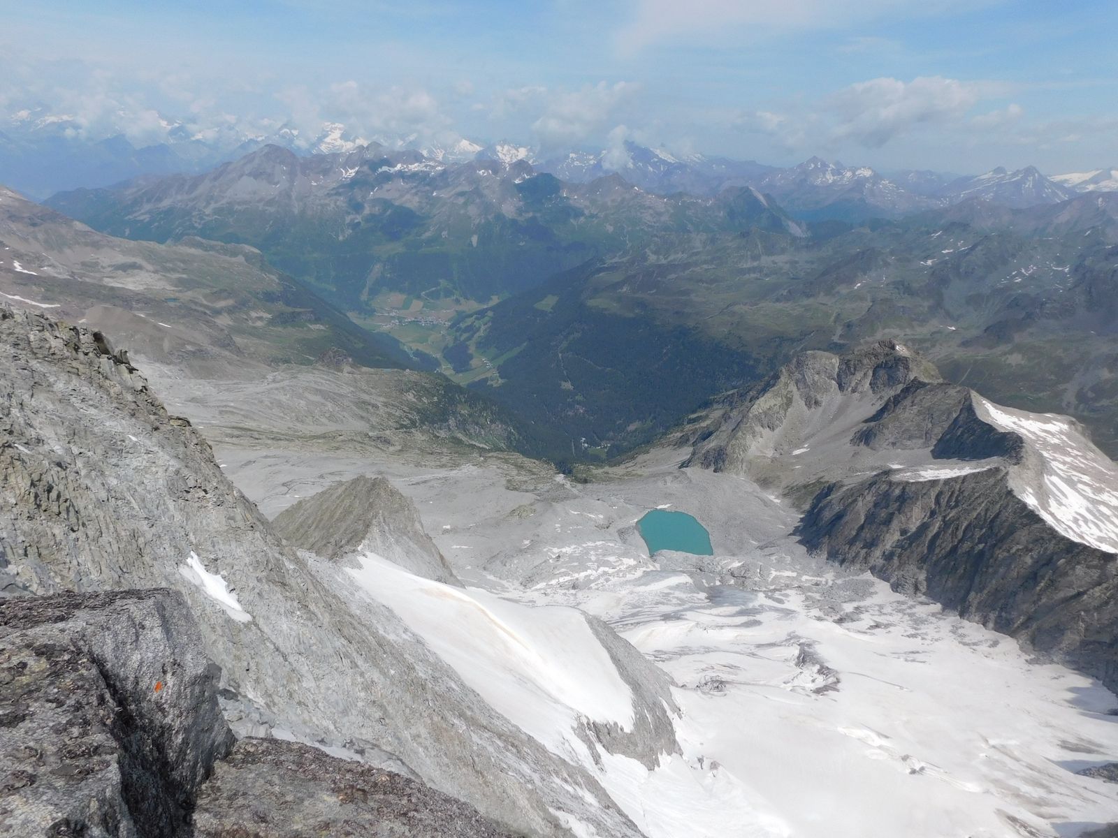 Blick vom Gipfel nach Rein in Taufers, links der NW-Grat: