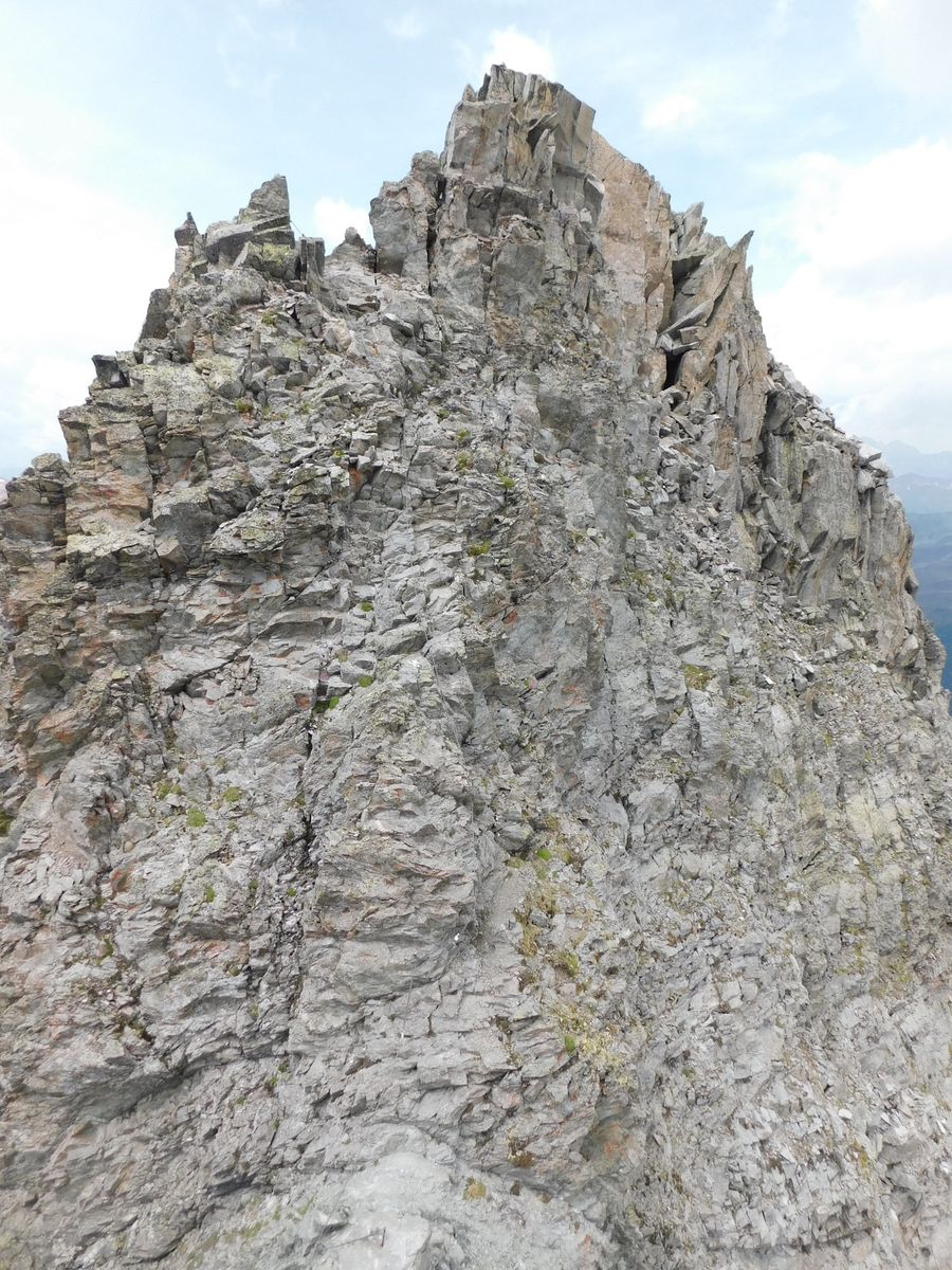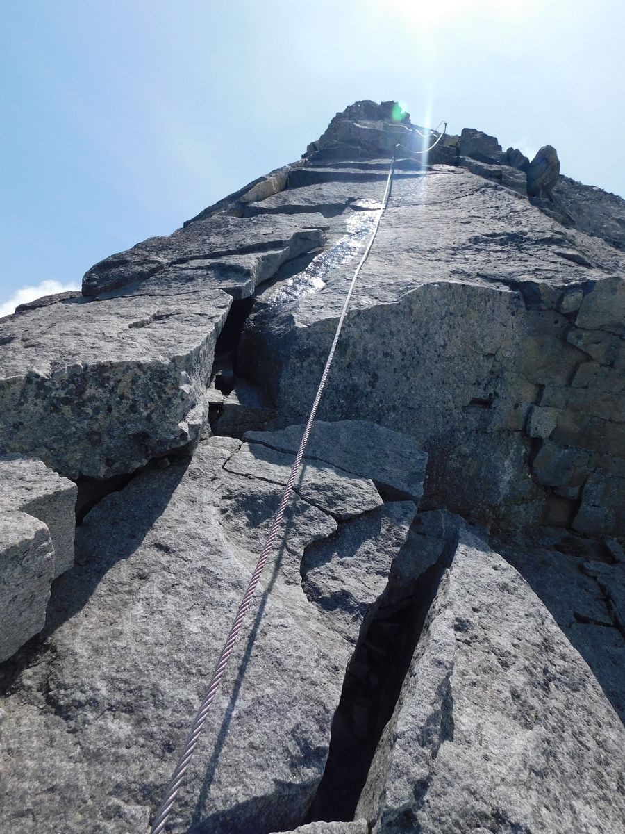 Ein Abschnitt der Schlüsselstelle im Vordergrund (diesen Zacken muss man überklettern):