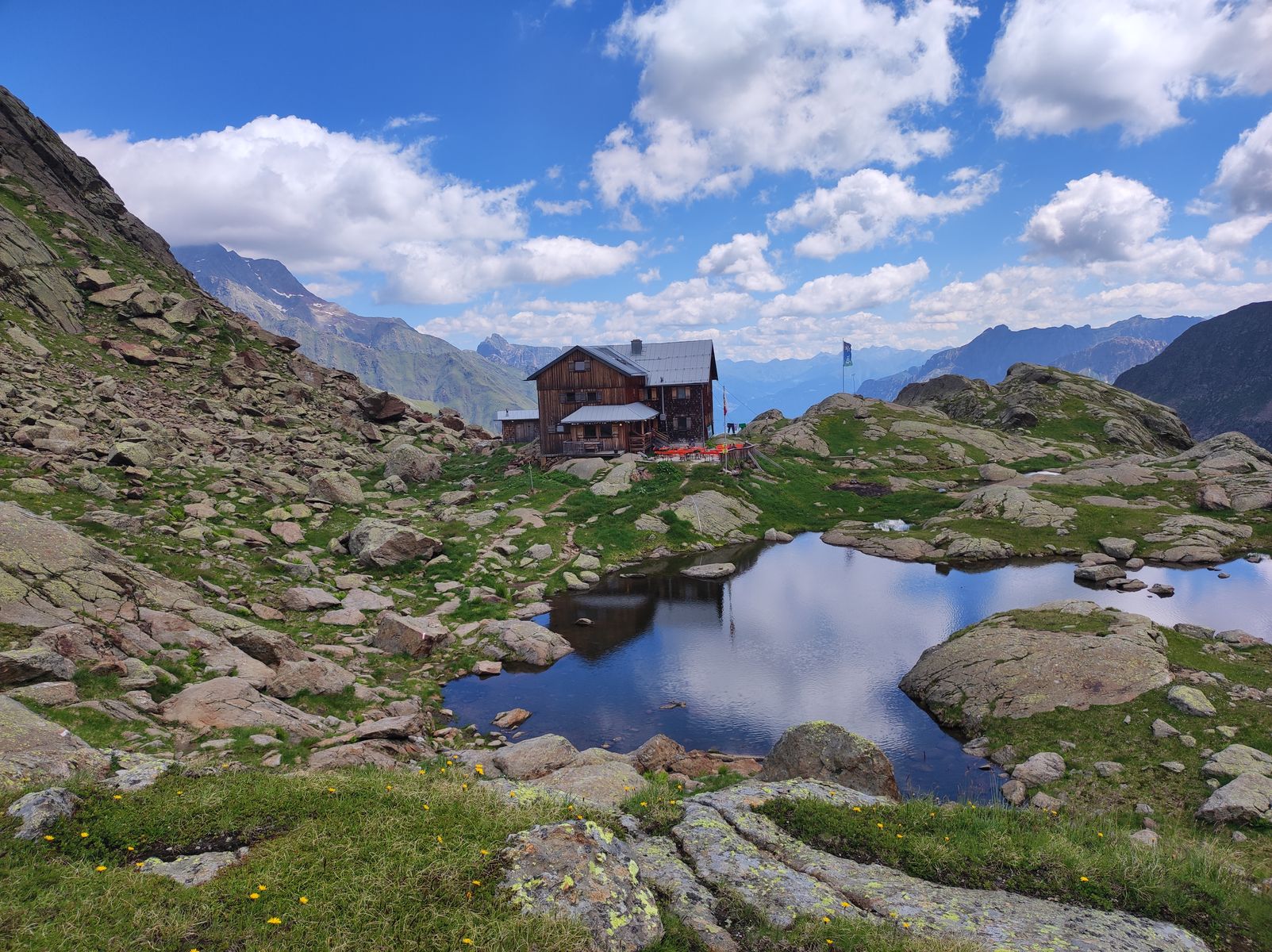 Zur Magdeburger Hütte: Der langjährige Hüttenpächter Hermann Vantsch ist letztes Jahr mit 72 in Rente gegangen und es hat ein junges italienisches Team übernommen. Ich hab mich gestern sehr wohl gefühlt - ich mag die urige, schmucke Hütte mit den äußerst gemütlichen Betten von jeher sehr gerne. Das Essen von Koch Mauro war ganz hervorragend. Wer auf die Hütte geht, braucht nicht erwarten, das übliche Kaiserschmarrn und Knödel-Einerlei zu bekommen, sondern hier wird schon mit einem gewissen Anspruch und Raffinement gekocht.