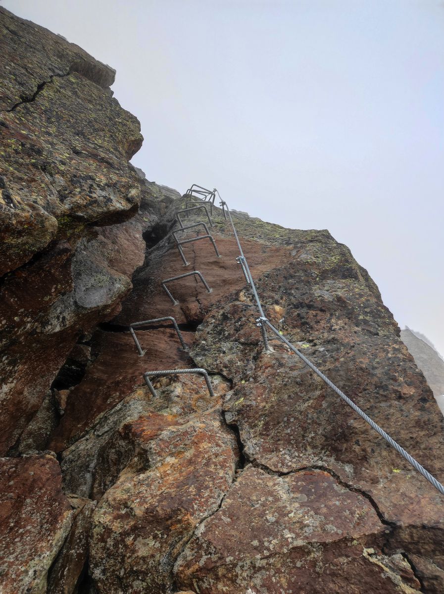 Alpine Bewertung: Zwischen Bremer und G. Tribulaunhütte meist T4, Hüttenzustiege deutlich leichter. Wetterspitze und Schneespitze T5 mit kurzen KS-Passagen (B/C). Hinweis: Die Wetterspitze muss man in meinen Augen ohne KS-Set besteigen können, da nur wenige Stellen versichert sind und viele, teils leicht ausgesetzte Ier-Stellen frei geklettert werden müssen. Wer sich's ohne Set nicht zutraut, sollte gleich verzichten. Die Schneespitze ist bei trockenen Bedingungen für einigermaßen Versierte völlig unproblematisch. Im Gegensatz zur Wetterspitze können hier aber auch weniger Erfahrene oder Kinder (mithilfe eines Sets) einen schönen Hochgipfel besteigen. Durchaus ein spannender Einsteiger-3000er. Beide Gipfel werden bei Nässe oder gar Vereisung aber schnell ungenießbar.