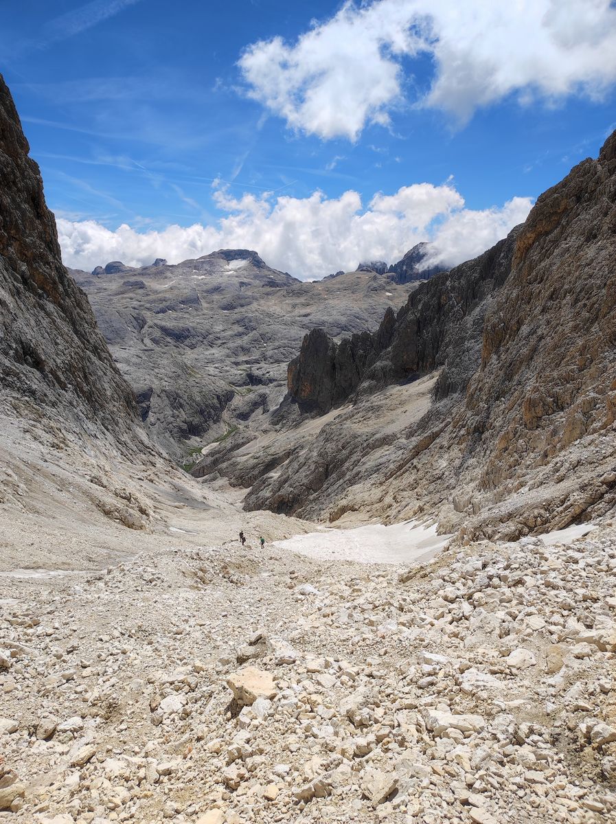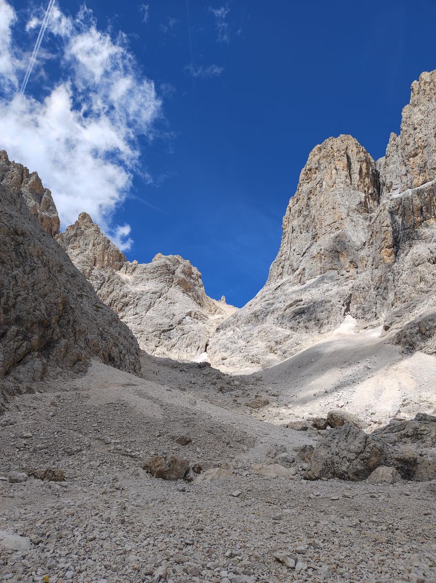3. Ich empfehle die hier beschriebene Route nicht nur wegen der eindrucksvollen Ferrata wärmstens! Wenn man diese weglässt, verpasst man erstens einiges und zweitens ist der "Normalweg" (die meisten fahren mit der Gondel bis zur Rosetta) im Aufstieg überwiegend ein mühseliges "Rumgeschottere". Im Abstieg ist der Schotter hingegen natürlich hilfreich.