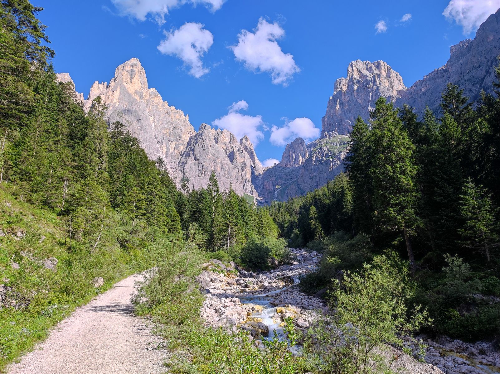 1: Der herrliche Talschluss des Val Canali, links Sass Maor