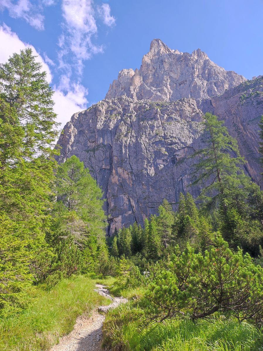 Der Talschluss des Val Canali gehört sicherlich zu den schönsten in den Dolomiten. Besonders sticht der Sass Maor mit seiner imposanten Ostwand hervor. Wer denkt da nicht gleich an Emil Solleder! Na, gut - das tun wohl die wenigsten, aber sei's drum...