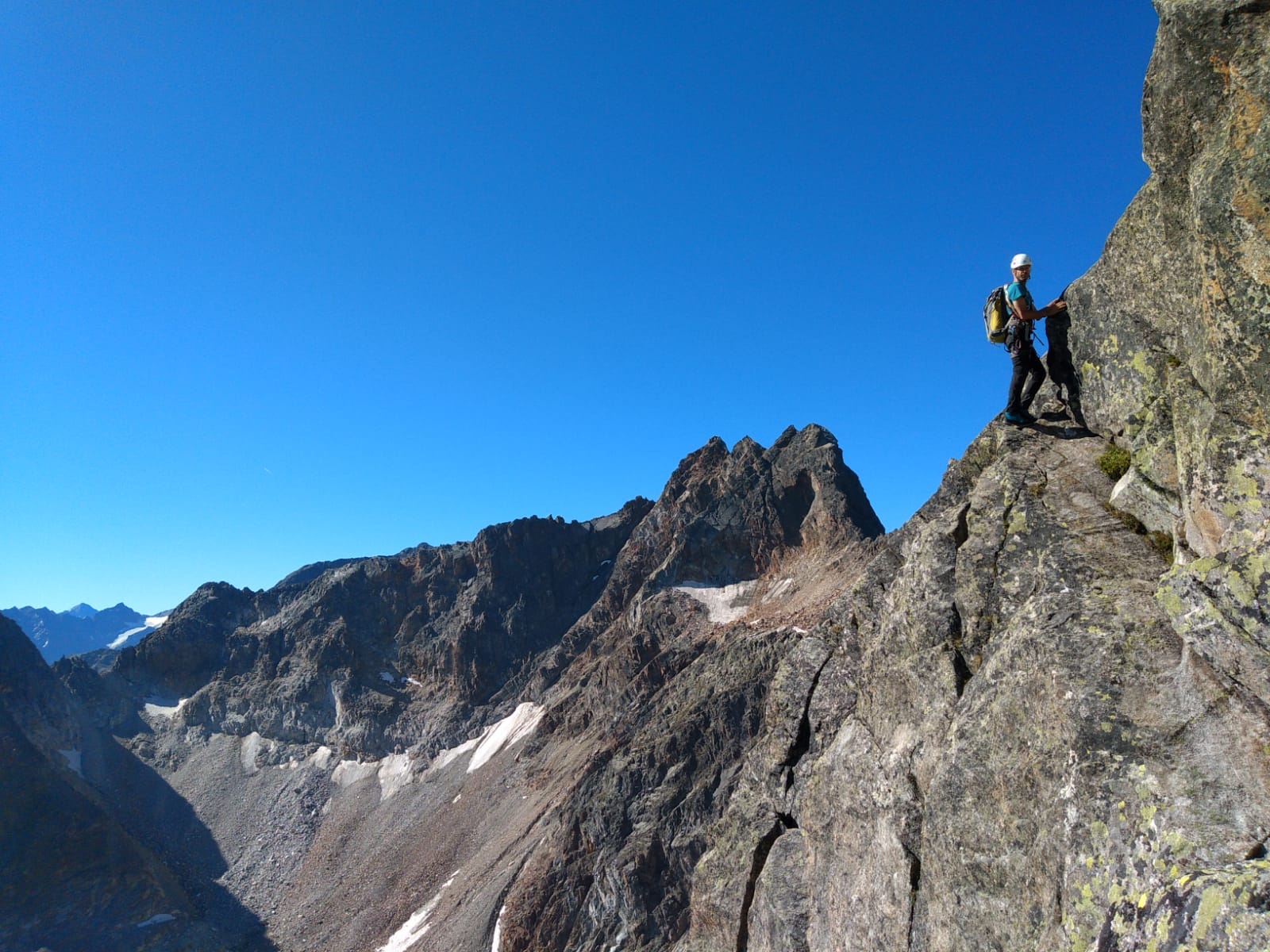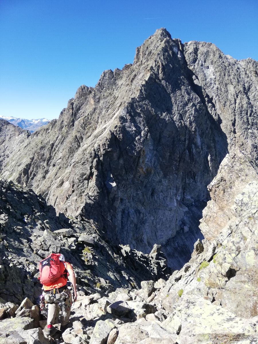 An diesem Prachtsonntag waren acht Seilschaften am Grat unterwegs, dazu einige Bergsteiger, die auf dem Normalweg rauf und runter sind.