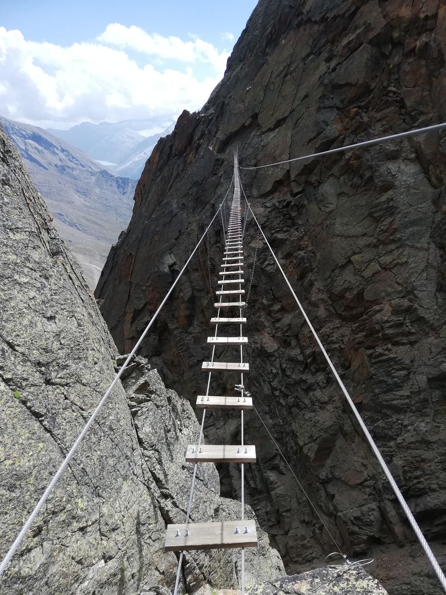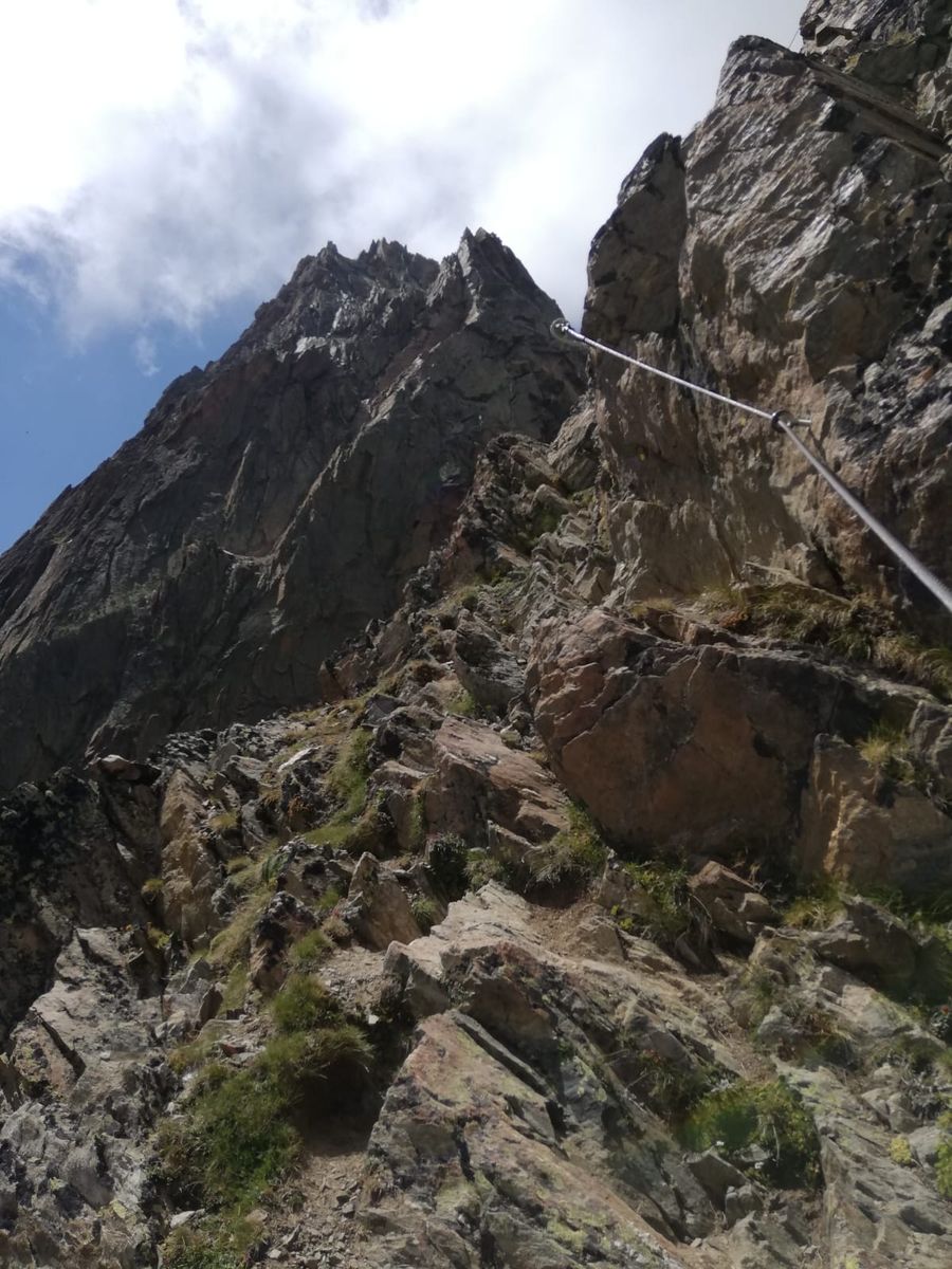 Einzelne Stellen D, viel B/C, sehr viel sehr griffiger Fels, so dass man viel klettern und die Sicherung mitlaufen lassen kann. Highlight ist die Hängebrücke, netter Gag. Es soll durchaus höhere Staugefahr bestehen, deshalb besser vor der ersten Seilbahn oder nachmittags starten.