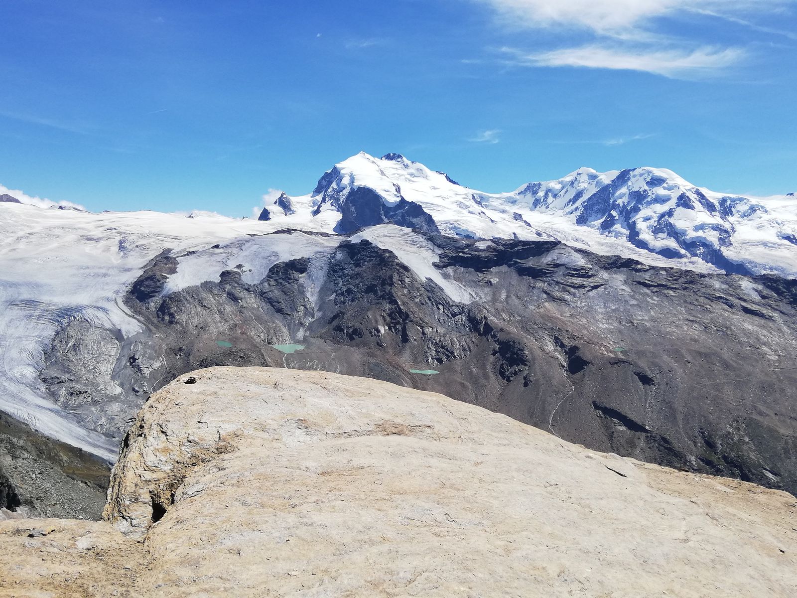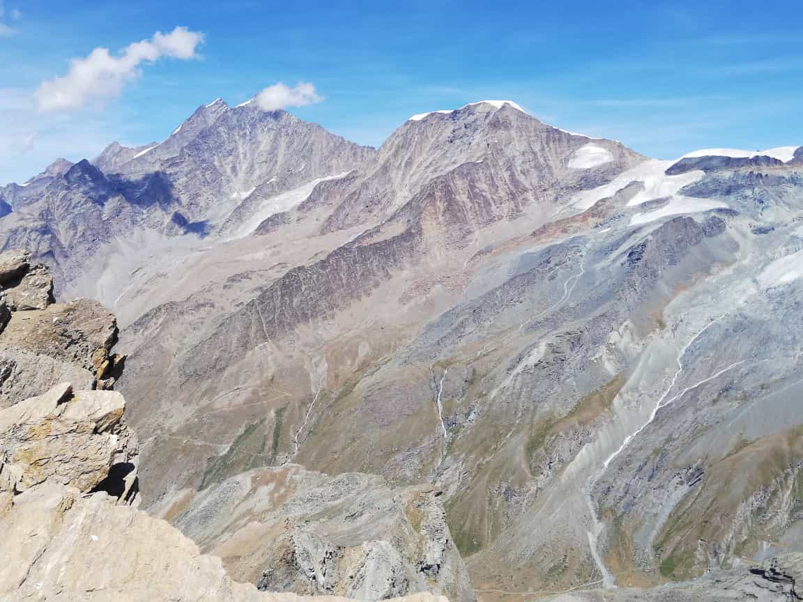 Das Oberrothorn ist wohl der Aussichtsberg schlechthin für alle hohen Gipfel rund um Zermatt und eignet sich sehr gut als Akklimatisations- bzw Regenerationswanderung. Dank Seilbahnunterstützung kann man die Wanderung auf 500Hm minimieren (und seinen Geldbeutel dafür maximal leeren). Die Tour selbst ist völlig harmlos und der Weg führt auch teils durchs Skigebiet und ansonsten eher ödes Gelände, die Aussicht entschädigt aber für vieles...