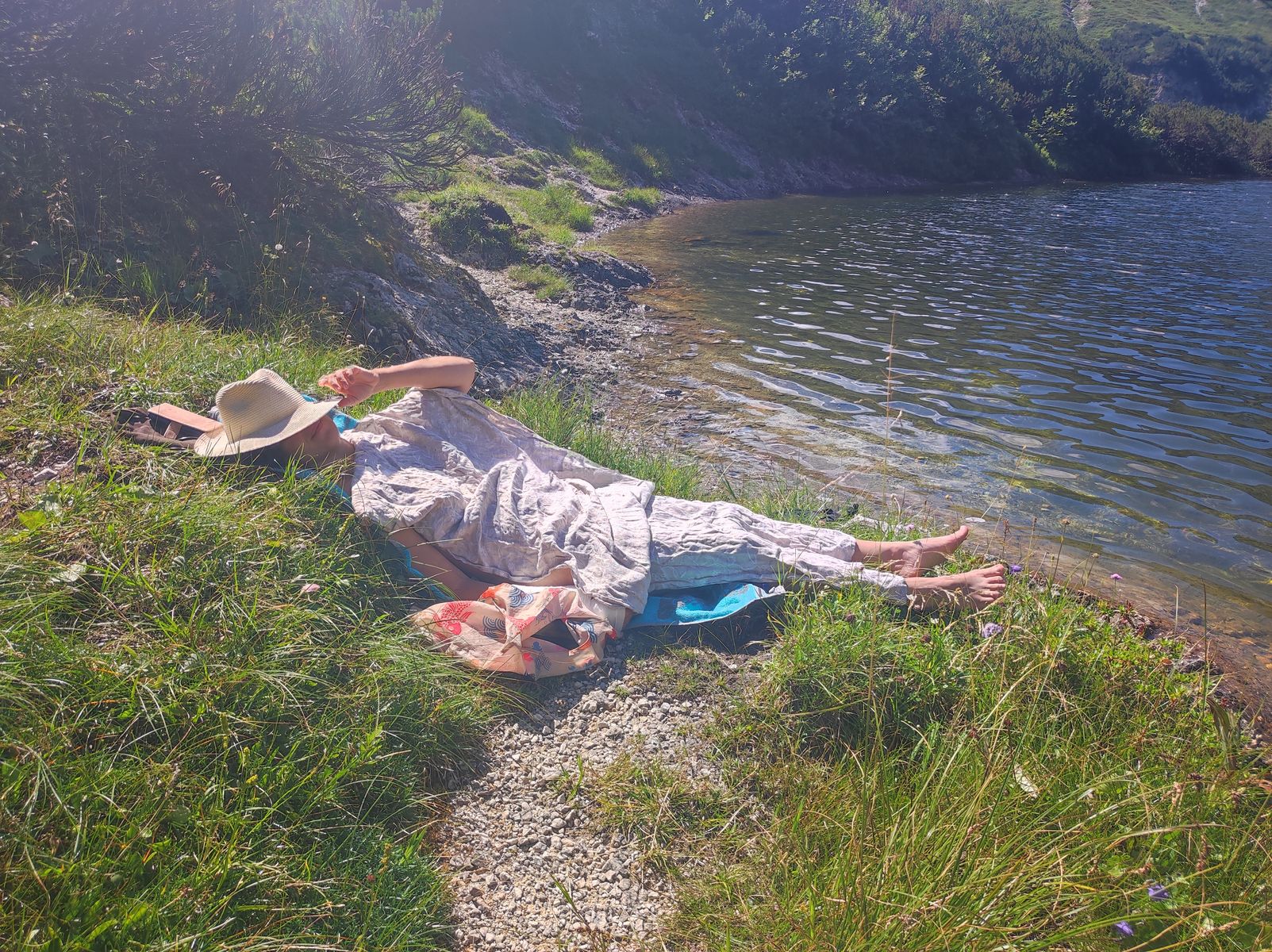 Alles eher gemütliche Touren, aber sehr schön. Ideal natürlich immer die Verbindung Berg und Baden. Nebenbei bemerkt hat sich meine Freundin vor zwei Wochen die Hand gebrochen (sieht man auf den Fotos), was natürlich den Hauptgrund für die Auswahl gemäßigter Ziele bildet.