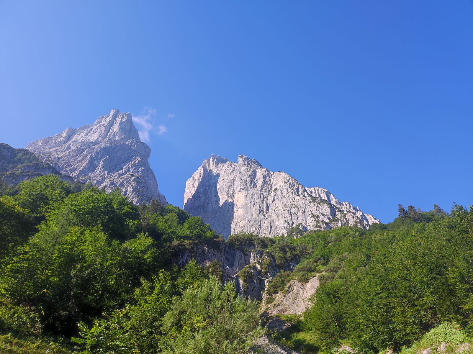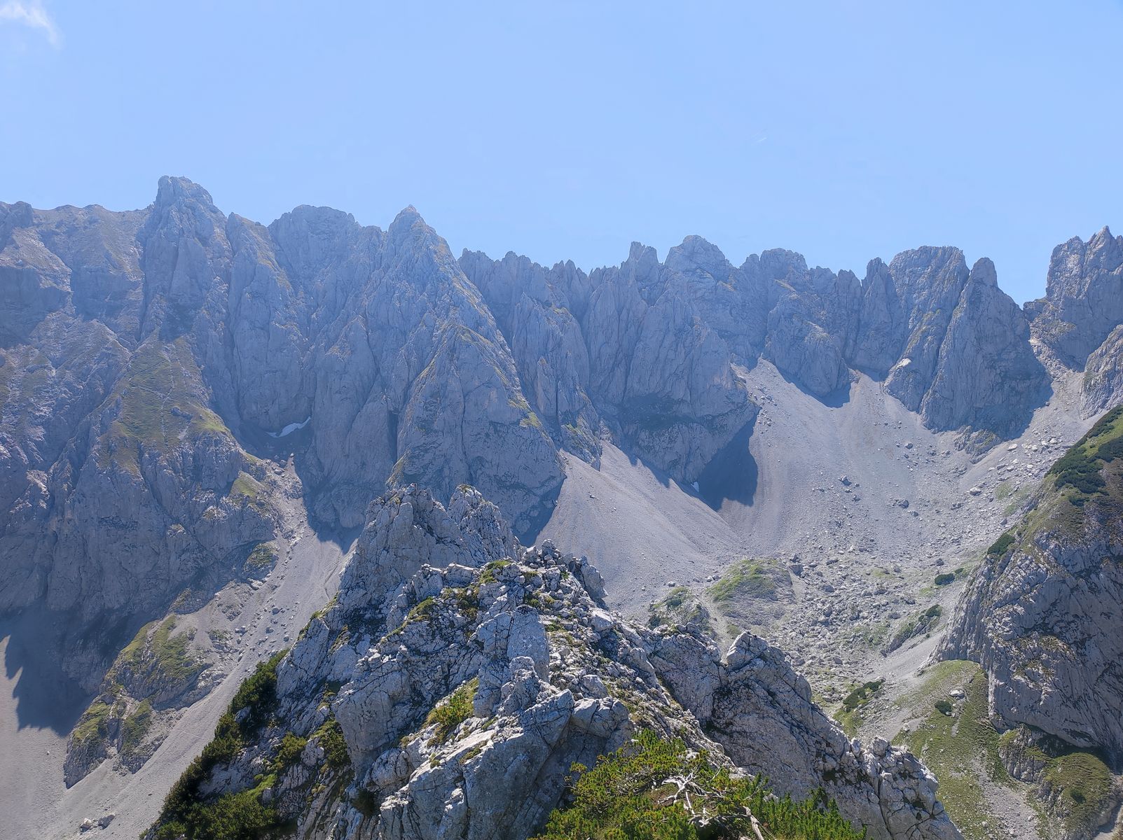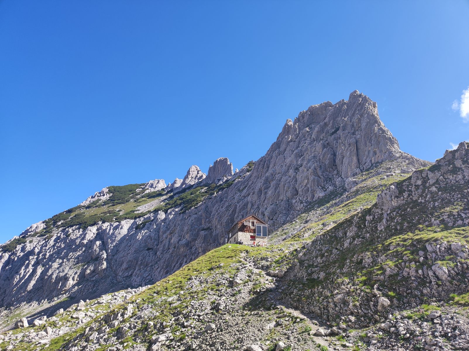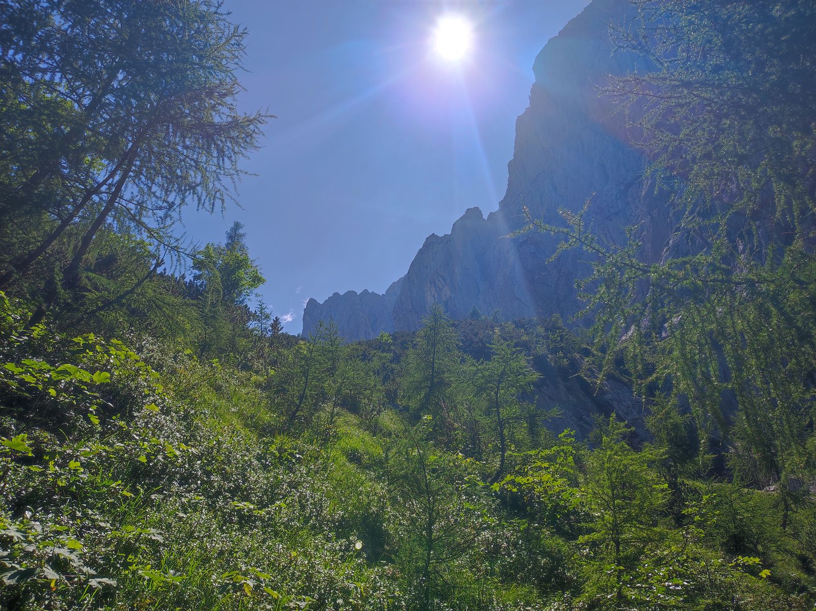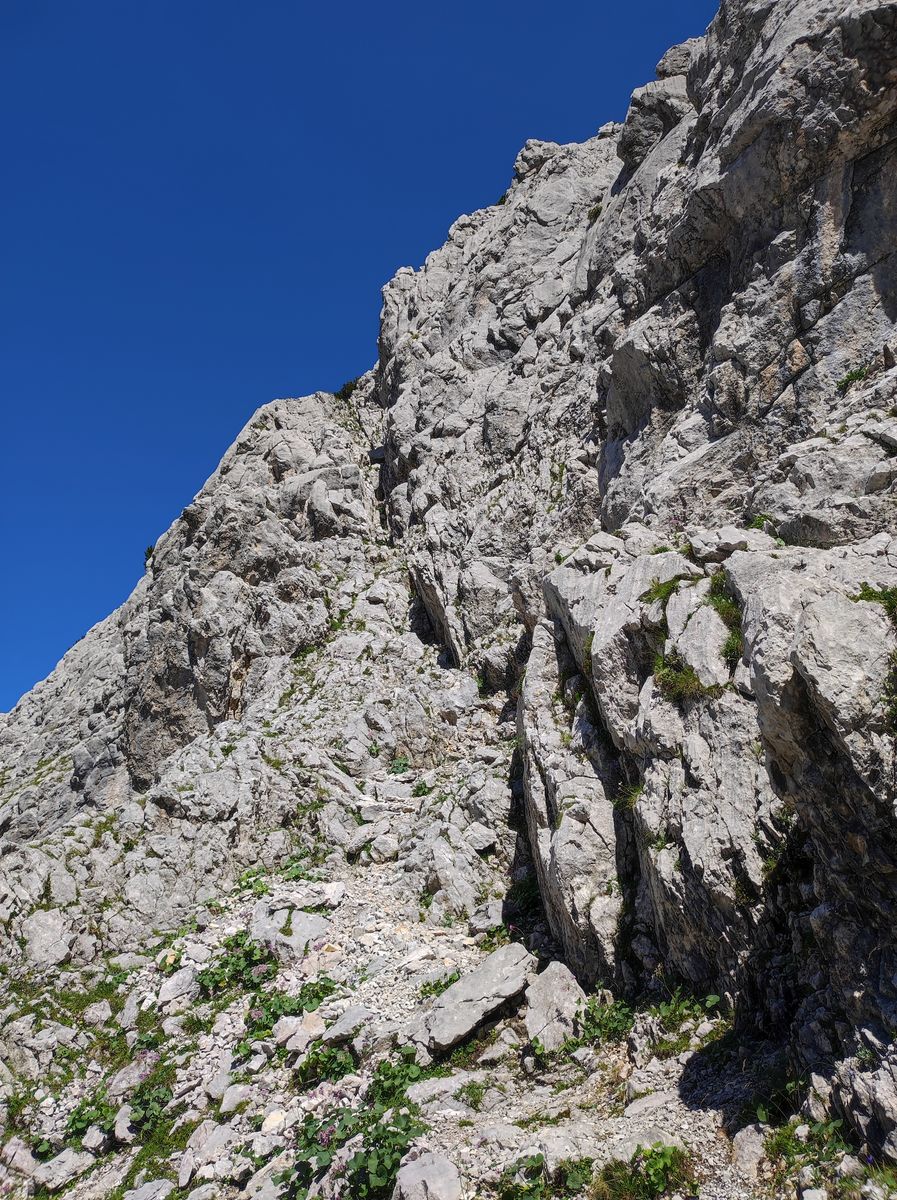 Die Tour auf diesem Weg anzugehen, empfiehlt sich natürlich aufgrund der nordseitigen Exposition gerade jetzt bei hohen Temperaturen - bei zeitigem Start (vor 8 Uhr) ist fast der gesamte Anstieg im Schatten.