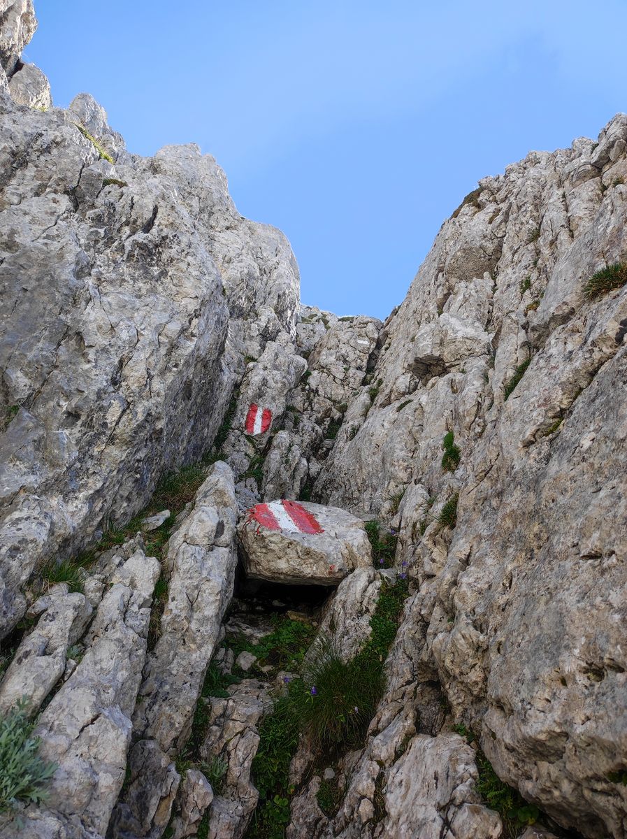 Die Zeitangaben auf den Schildern finde ich arg übertrieben: fast 4h von der Griesener Alm zum Kleinen Törl (nur 1000 Hm bei ziemlich direkter Wegführung)? Vielleicht, wenn man zwischendrin zwei Stunden Pause macht...