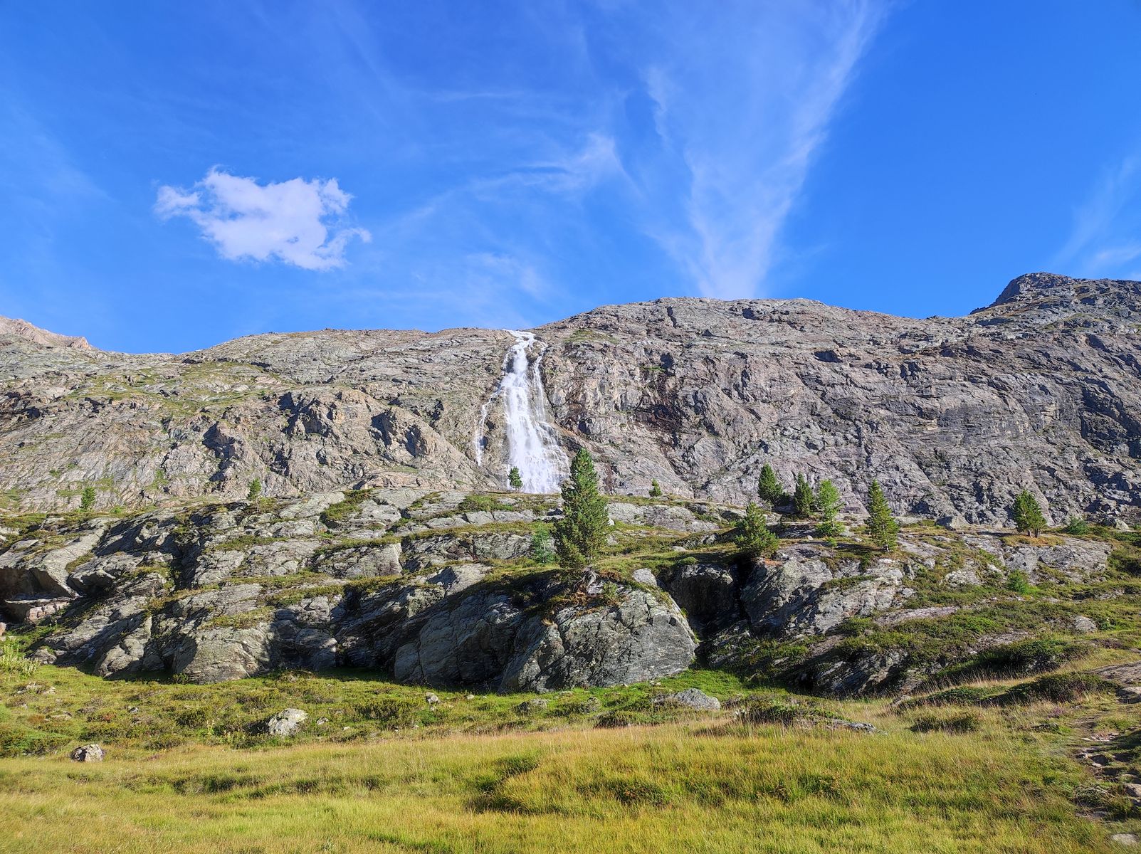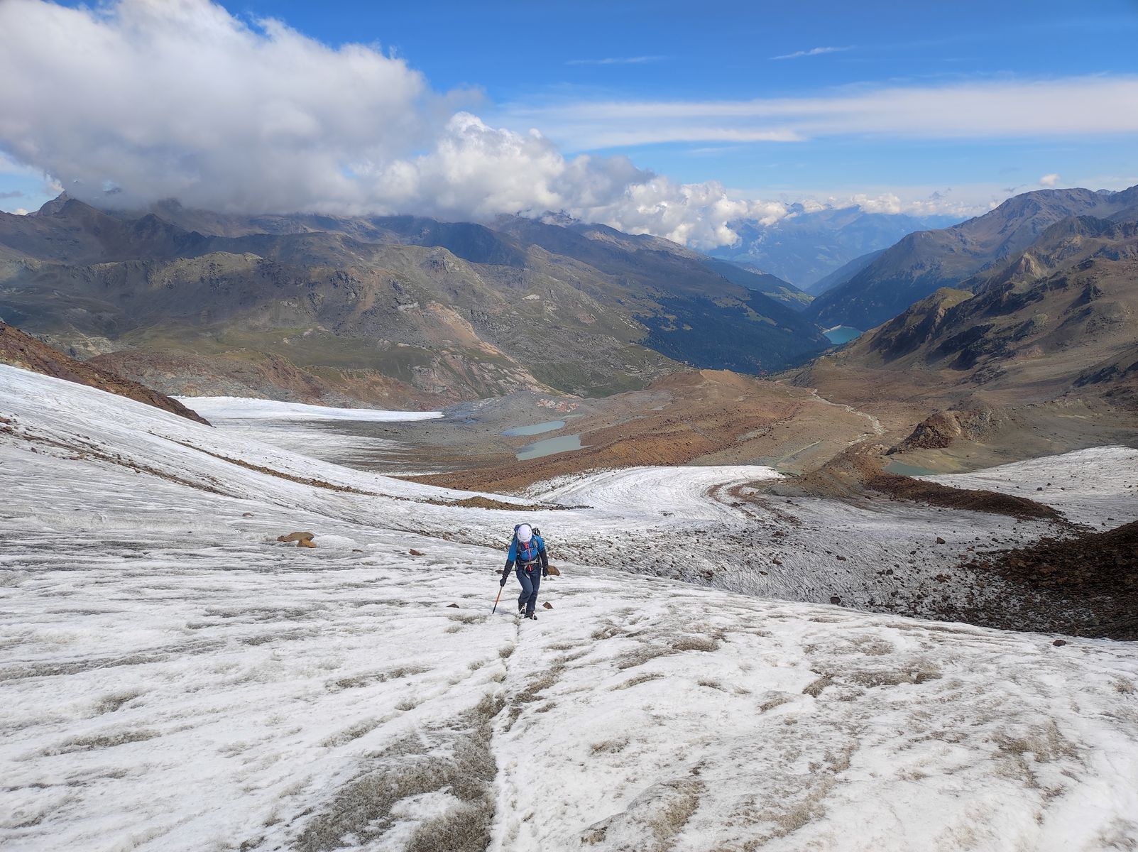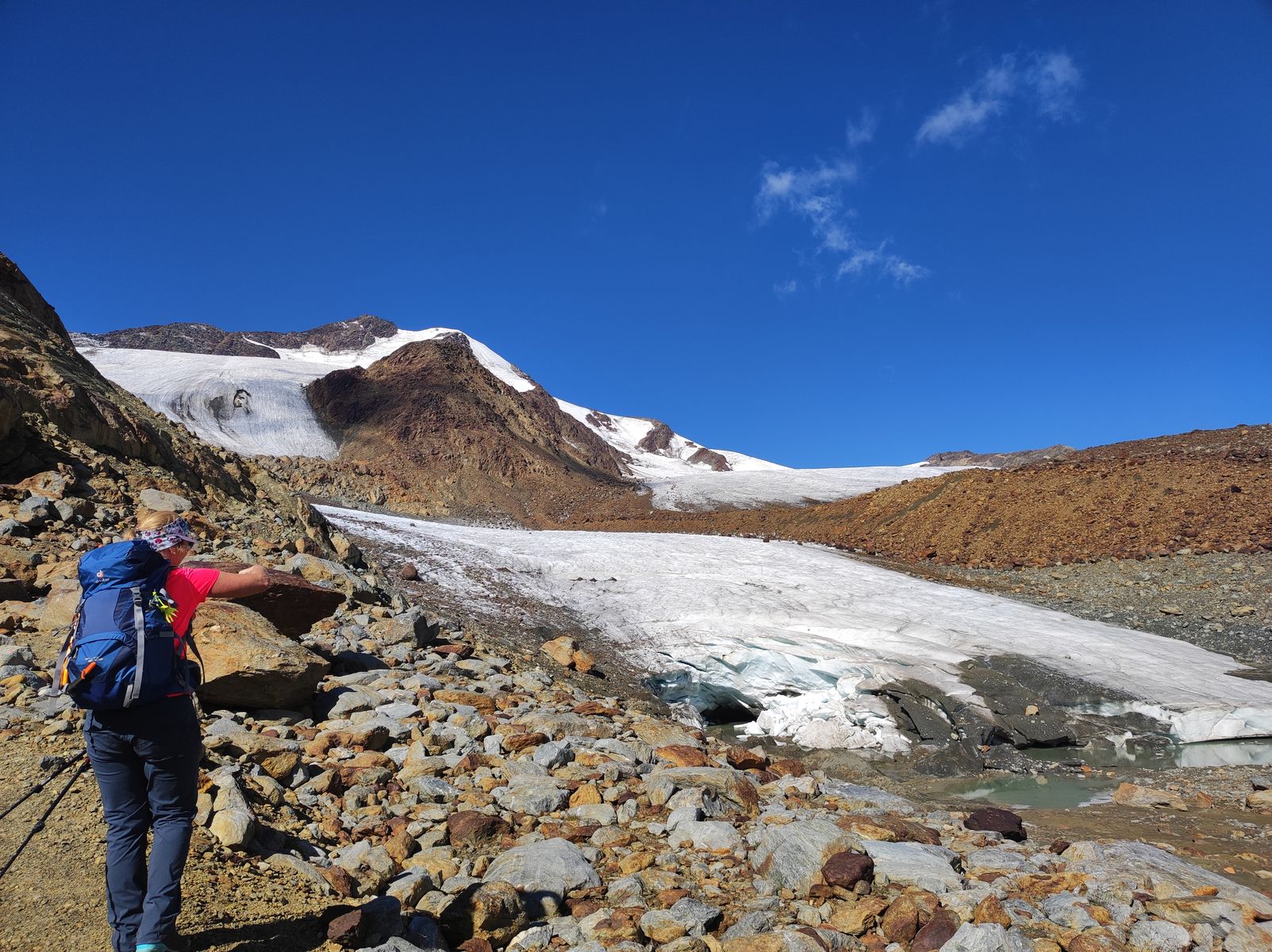 Die Zufallspitze selbst lässt sich übrigens mittlerweile auch fast eisfrei besteigen, wenn man den Grat über die Furkelscharte angeht. Allerdings muss dann viel über lehmiges Geröll, unter dem sich oft auch noch Eis befindet, getorkelt (der einzig passende Ausdruck) werden - viele andere Begeher haben diesen Weg gewählt, aber ich find die Gletscherroute viel lohnender. Am besten geht man gleich kurz oberhalb des Gletschermauls aufs Eis.