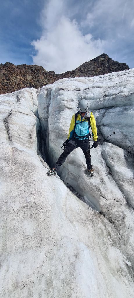 7/8: Do samma no a bisserl gaudimäßig durch die Spaltenzone am Schranferner gestiefelt - durch muss man aber eigentlich nicht.