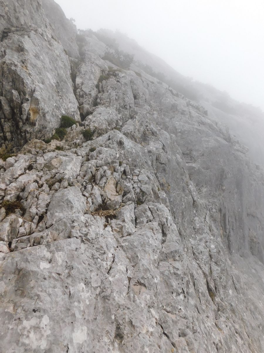 Blick zurück nach oben - diese Passage von der Scharte bis runter zur Schuttflanke fand ich klettertechnisch am knackigsten (nicht alles ist hier fest):