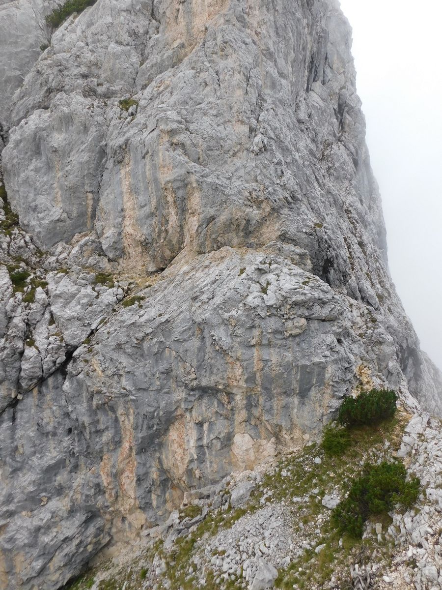 Hier das Band von unten, nachdem ichs geschafft habe (in der Bildmitte). Es kann gut sein, dass es auch einfacher gegangen wäre und ich nur die Tritte/Griffe nicht gesehen habe, die trotz Rucksack gut machbar sind. Aber so wars mir lieber, als noch länger herumzuprobieren: