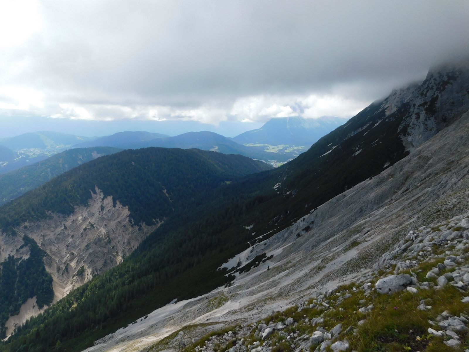 Der Rest war dann wieder relativ einfach, wenn man am Grat bleibt. Ein paar schöne Tiefblicke gibts trotzdem! Und hier bin ich wieder beim Abstieg ins Leutaschtal (über Arnspitzhütte und Hohen Sattel):