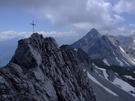 Lattenspitze - Pfeiser Spitze: über längere Strecke nur fussbreite Steigspuren im Steilgelände, tw. ausgesetzt, nicht versichert. Erst direkt am Gipfelaufbau der Pfeiser Spitze beginnen die Seilsicherungen, die einen erst in eine Scharte hinunter und dann den steilen Gipfelaufbau hinaufleiten. Alles trocken, Seile solide....
