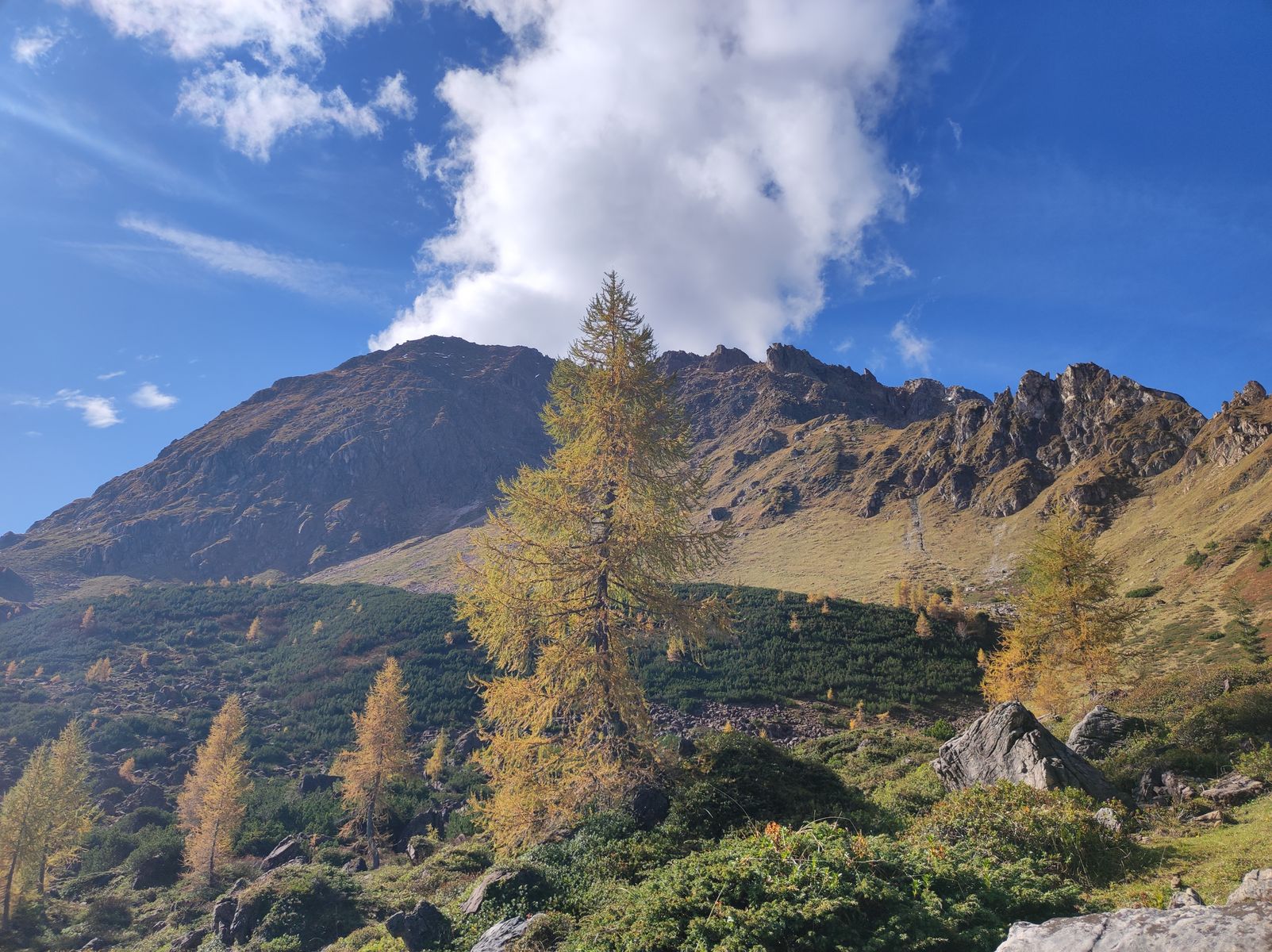 Auch wenn er bei weitem nicht der höchste Gipfel der Kitzbüheler Alpen ist (das Kreuzjoch ist fast 300 Meter höher), ist der Große Rettenstein doch mit Sicherheit der markanteste Berg in dieser Gebirgsgruppe. Und die Tour zu ihm gehört in meinen Augen auf jeden Fall zu den schönsten - gerade momentan, wo die Lärchen gerade ihre bezauberndes Herbstkleid angelegt haben.
