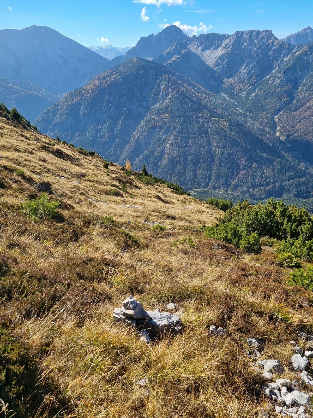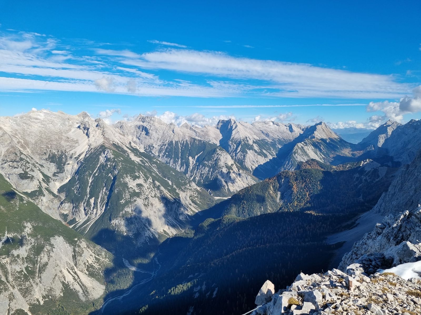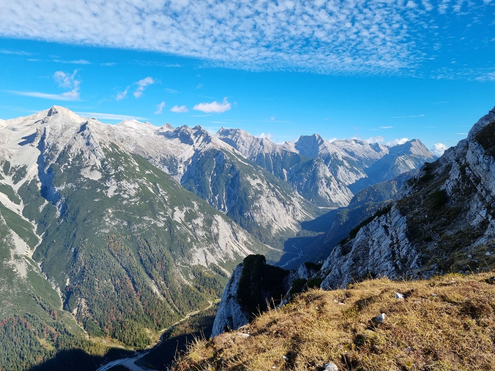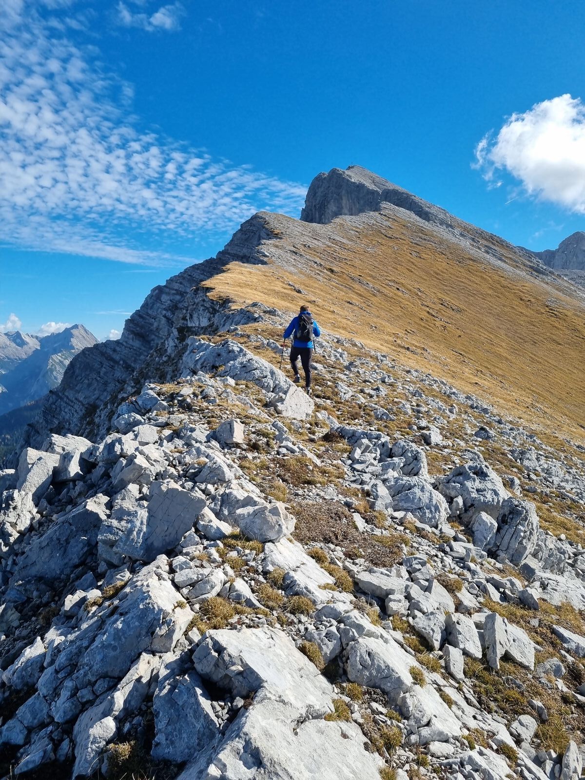 Fazit: Der Hohe Gleirsch ist ein fantastischer Aussichtsgipfel. Auf dem Westgrat wird man höchstwahrscheinlich alleine unterwegs sein und auch auf dem Normalweg wird der Berg nicht unbedingt überrannt. Die Tour ist aber auch beschwerlich und wird nicht jedermanns Sache sein. Es sind zwei Forstweghatscher von je ca. 4 km zu absolvieren. Der Aufstieg bis zum Westgrat ist orientierungsmäßig nicht ganz leicht und ehrlicherweise auch nicht so schön. Der Westgrat selbst ist von der Aussicht her ein Highlight und technisch nicht schwierig. Aber auch hier ist das Gelände teilweise ein bisschen unangenehm zu gehen. Insgesamt eine Tour für Karwendelfans, die ein bisschen Individualismus möchten.