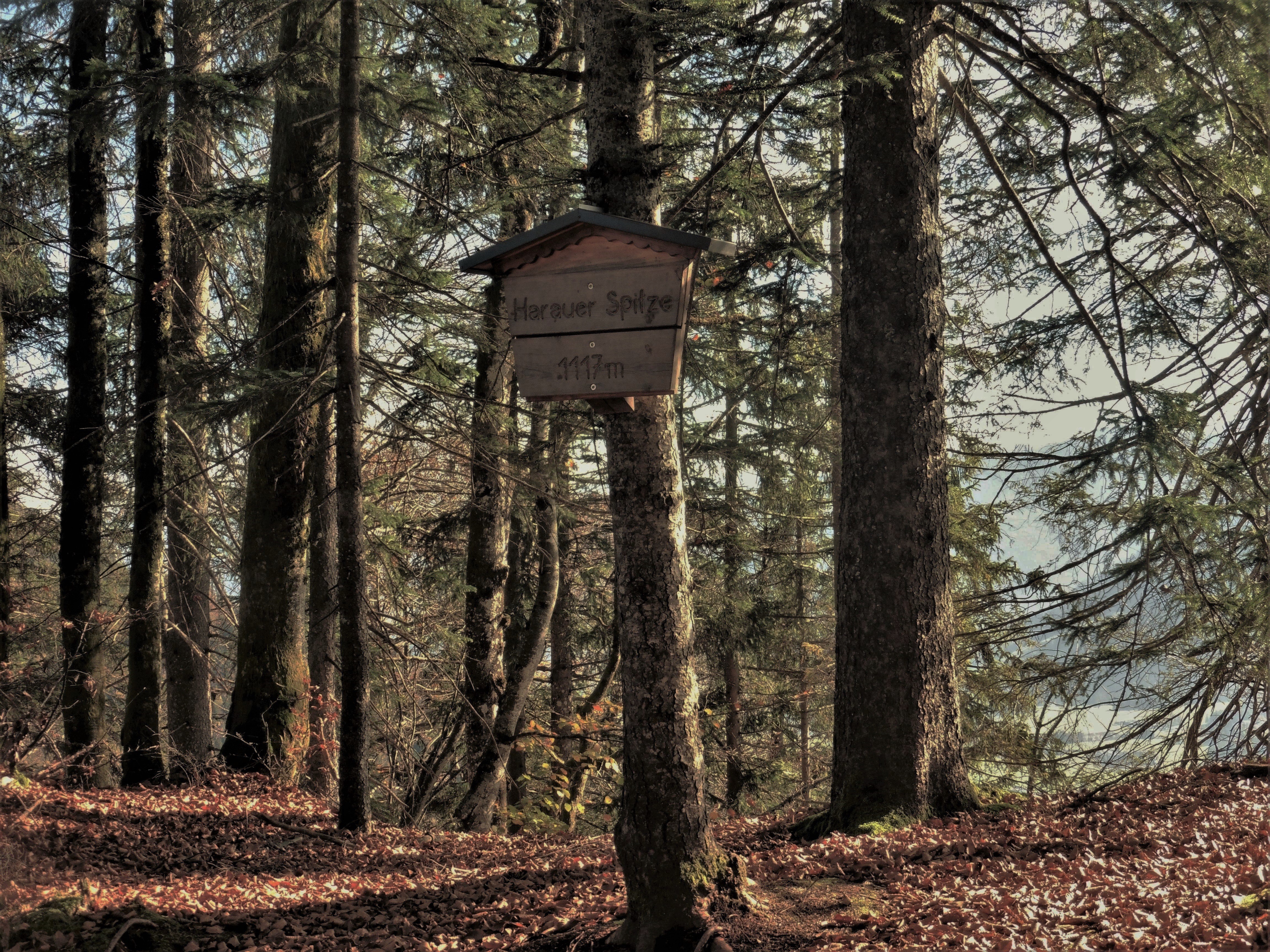 Bild 6: wenige Meter eine Tafel mit dem Namen "Harauer Spitze";