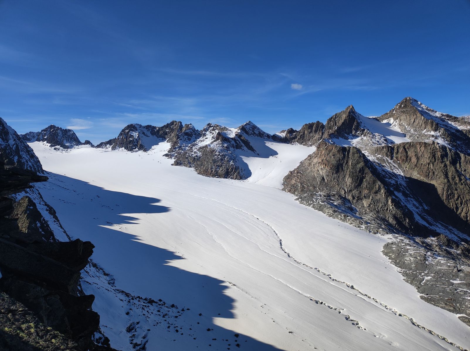 5: Am Grat angekommen gibt es diesen phänomenalen Blick auf den Lüsener Ferner.