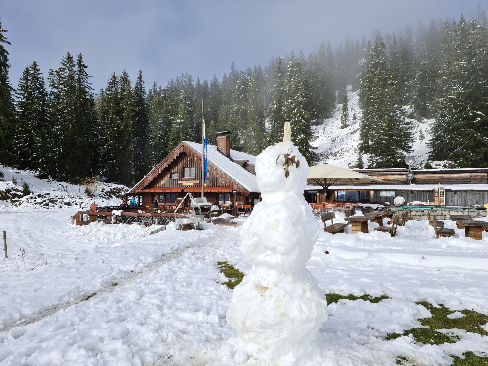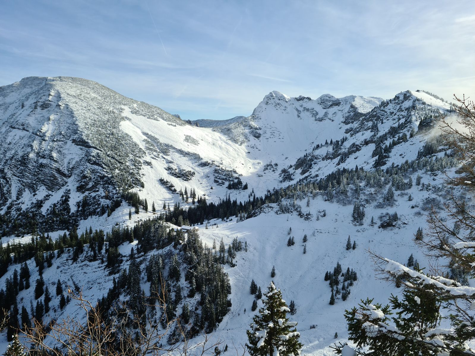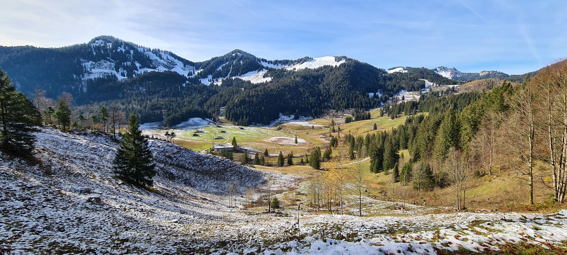 Es hat oberhalb von 1200 m Schnee, insbesondere an Schattseiten. Unten noch ganz wenig, oben waren es schon 20 cm.