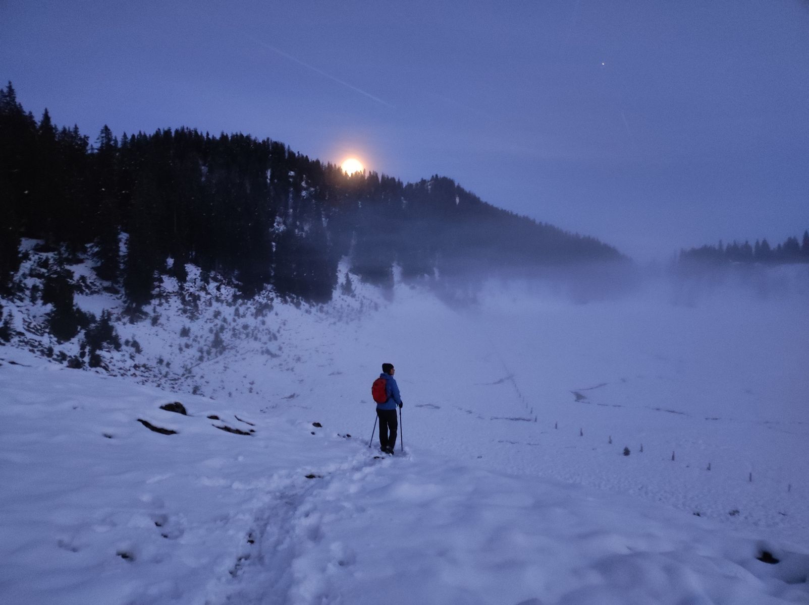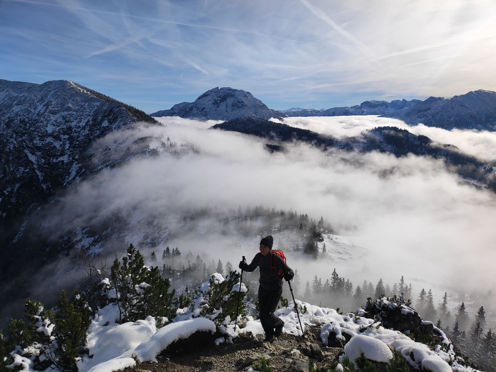 Außerhalb der Saison kann man auch auf populären Tegernseer Bergen wie Schildenstein oder Halserspitze noch Bergeinsamkeit finden - gerade wenn man die Übernachtung im gemütlichen Winterraum der Gufferthütte einflicht und das Ganze so zu einer 2-Tagestour macht.