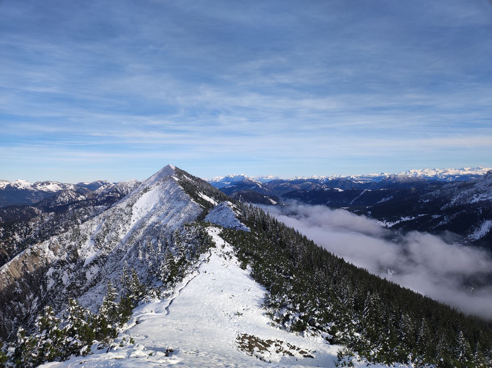 5/6: Am Blaubergkamm ist der Steig selbst weitgehend schneefrei.