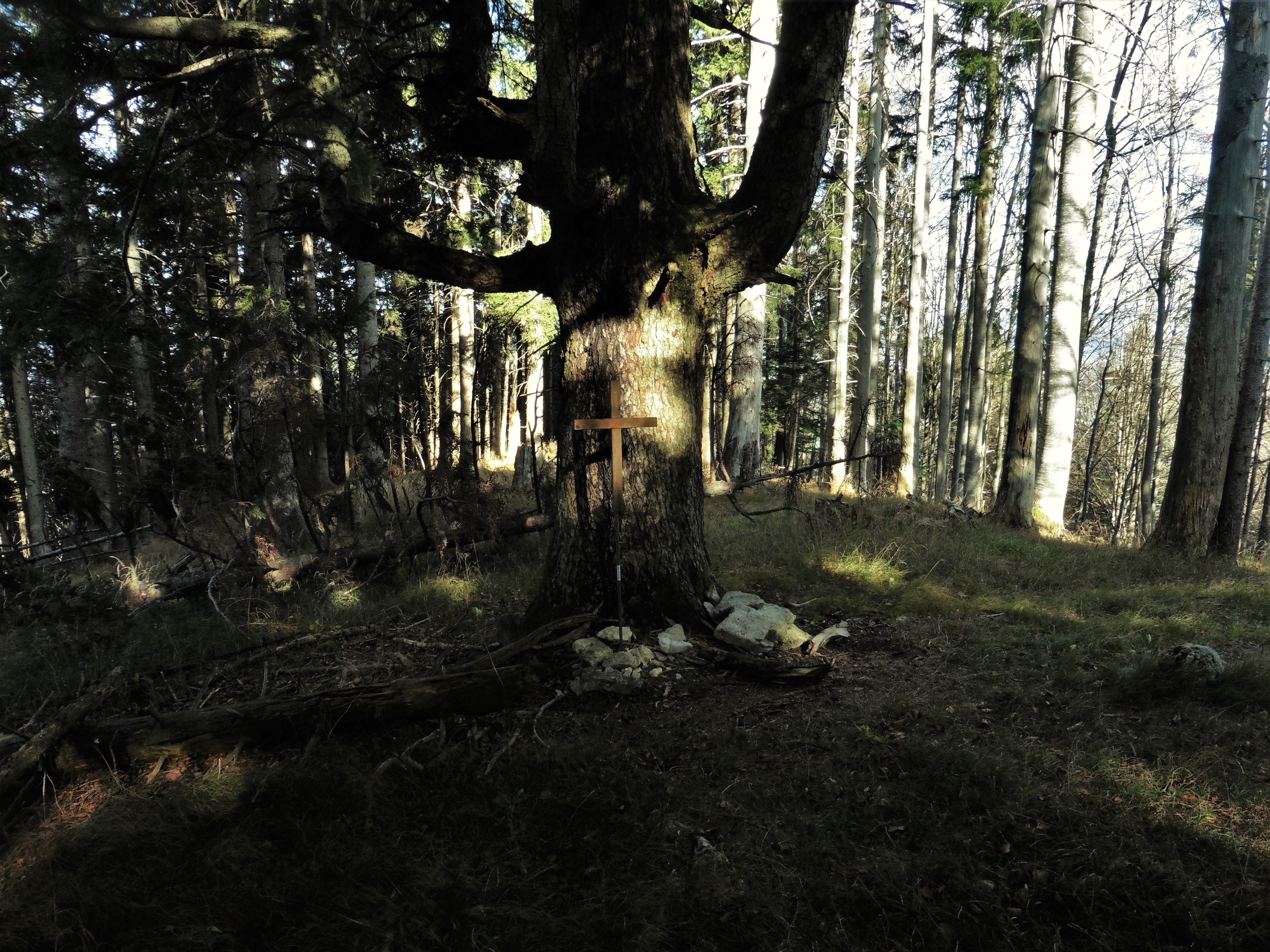 Die Tour ist weder beschildert noch markiert aber aufgrund der zahlreich vorhandenen Forstwege und Steige gut begehbar; vom Parkplatz wenige Minuten talein; nach der Brücke über den Kirchbach links ab, über den Bach zu einer Wiese; diese links ansteigend queren zu einem Zaun mit Übertritt; auf dem hier vorbei führenden Forstweg bergauf; die weitausholenden Kehren können auf deutlich sichtbaren Pfaden, die mit Steinmandln markiert sind abgekürzt werden; am Gipfel des Schrofen gibts ein Kreuz mit Buch, vielen Sitzgelegenheiten sowie eine tollen Aussicht nach Norden; vom Gipfel in südlicher Richtung leicht absteigen zu einer Lichtung, welche aufgrund der Spuren offensichtlich von der Bundeswehr genützt wird; am linken Rand der Wiese bergauf; am Beginn des Waldes den Weg sofort nach links verlassen und auf einem steilen Pfad auf den Breitenberg; auch hier gibts ein Kreuz mit einem Bankerl aber keine Aussicht; der Abstieg erfolgt wiederum nach Süden; hier ist die Orientierung etwas schwierig, denn die Pfadspuren sind unter dem Laubteppich verborgen; in der Senke zwischen dem Breitenberg und dem Zugberg trifft man auf einen markierten Wanderweg, der in einem großen Bogen zur Schlipfgrub-Alm und im weiteren Verlauf zurück zum Parkplatz leitet;