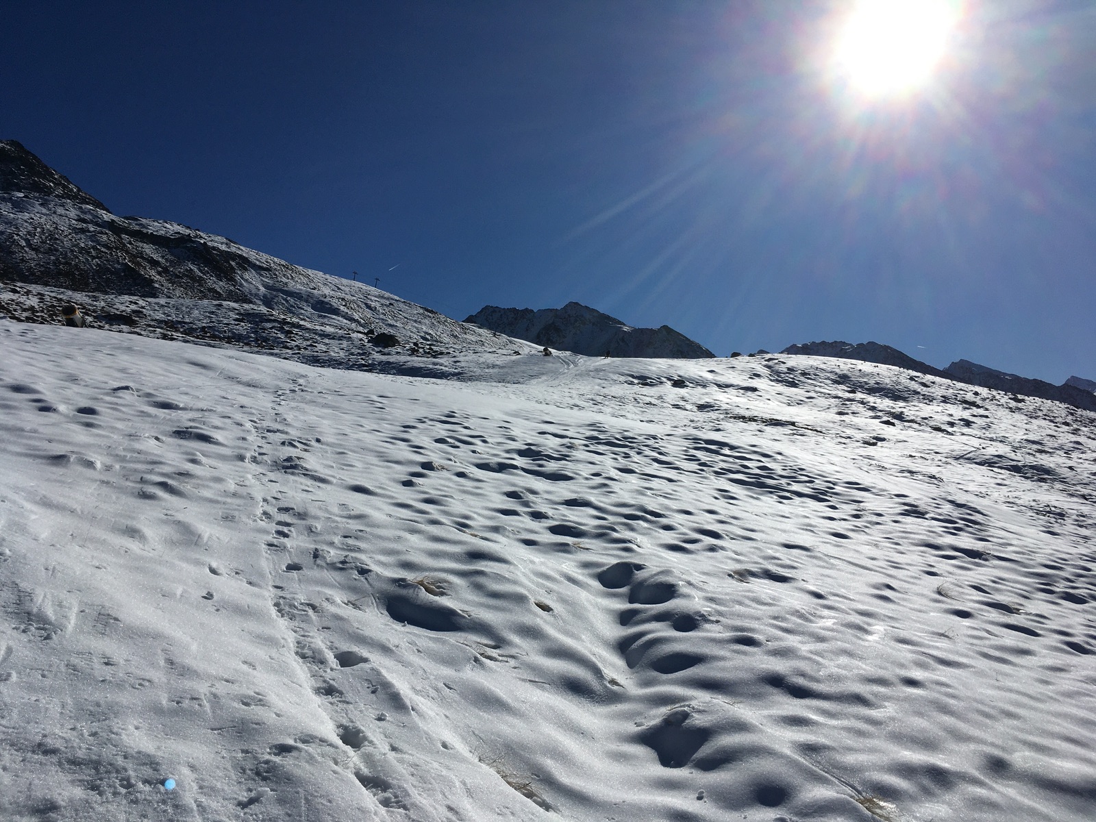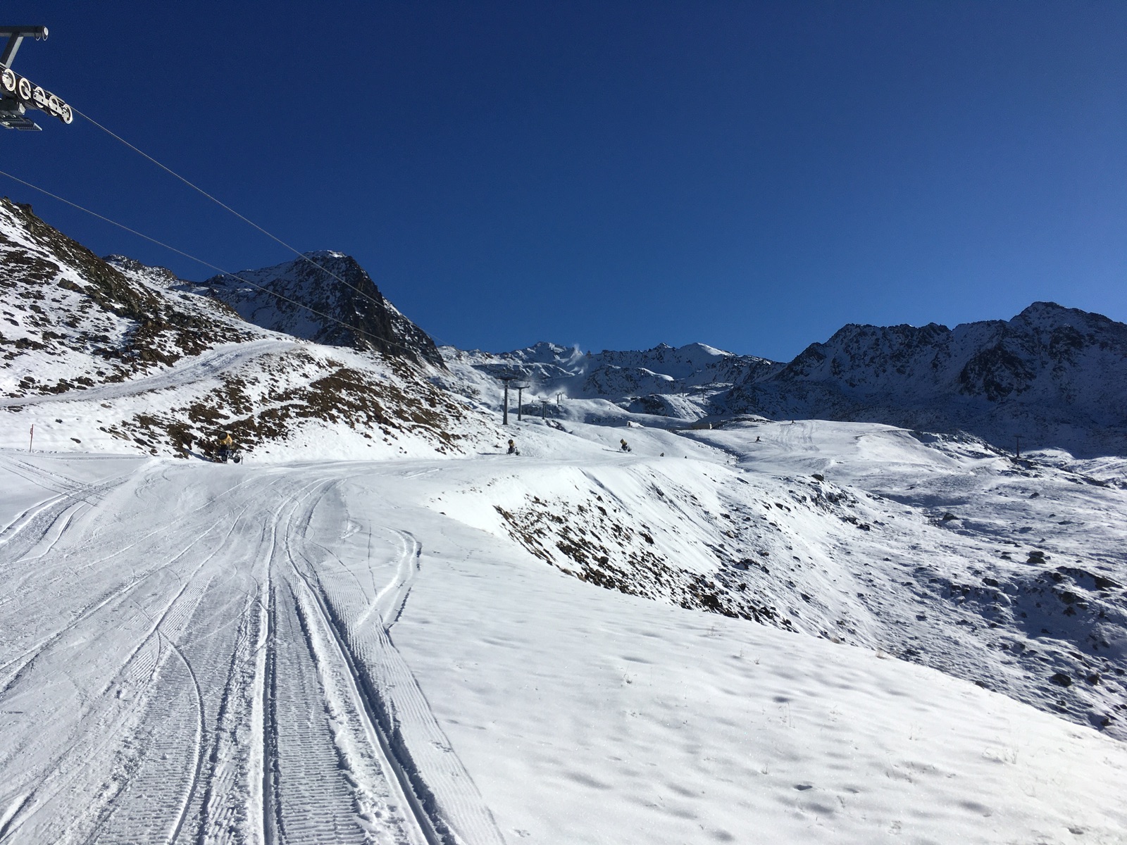 Gestern ging es auf die für mich in dieser Saison erste Skitour (hat ja ohnehin schon gefühlt viel zu lange gedauert) - viel geht ja noch nicht, aber in Obergurgl / Hochgurgl geht es meistens früh in der Saison. Gestartet bin ich an der Mautstelle der Timmelsjochstraße. Unten gab es nur einen schmalen Schneestreifen, ab dem Ziehweg zu den Liftstationen auf ca. 2.400 m (also nach ca. 5 min) war es dann besser, oberhalb der genannten Liftstationen brauchbar. Natürlich muss man auf noch offene Steine, Bachgräben und ggf. apere Stellen achten. Und es geht nur auf den Pisten / Wegen, außerhalb ist es wirklich zwecklos. Am Gipfel gab es sehr gute Aussicht, aber einen wirklich kalten Wind - überhaupt war es zwar nicht kalt, aber wenn der Wind geht, wird es schnell zapfig. Nach der Abfahrt bis zu den Liftstationen auf ca. 2.400 m bin ich nochmals hoch zur Bergstation des "Top-Schmermer-Jet", ca. 2.930 m. Hier nichts los, aber es gibt auch nur die Wahl zwischen steinig und Schneekanonenbruchharsch. Das könnte sich natürlich in den nächsten Tagen bessern, s.u.