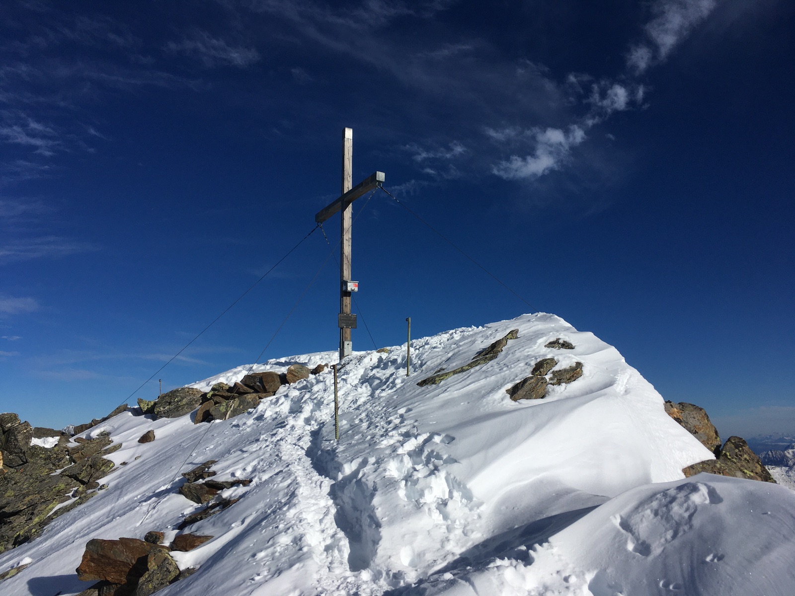 Insgesamt Verhältnisse eher für hartgesottene Skitourengeher als für die "Ich-geh-nur-bei Pulver + Sonne-Fraktion". Ich empfehle dringend, alte Skier zu nehmen, aber nicht die "kantenfreien Uraltsteinski", weil der Schnee teilweise doch eisig ist.