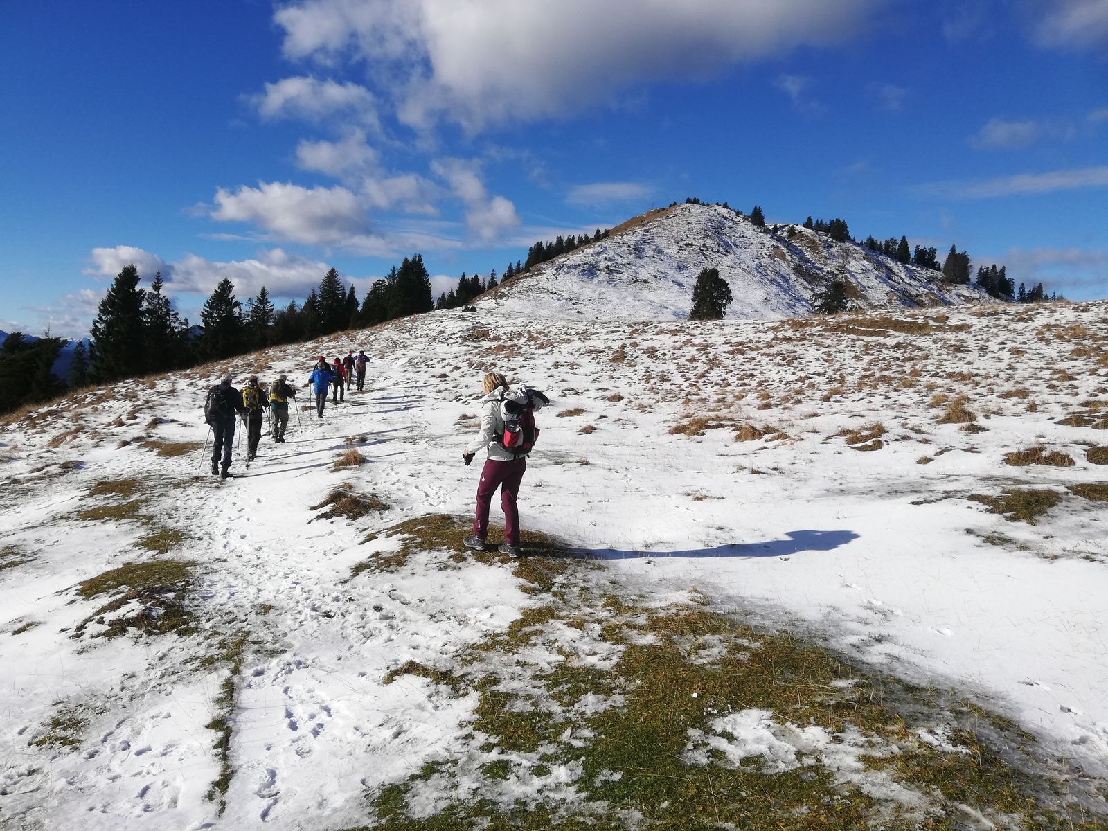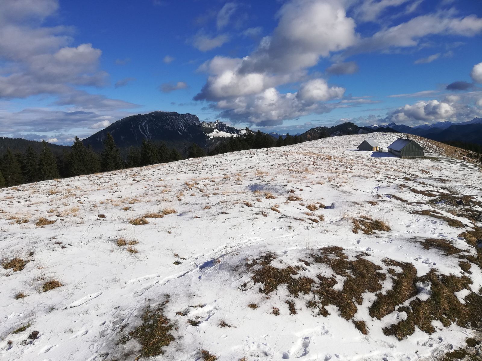 Ideale Spätherbsttour. Von Jachenau auf dem Steig durch den Südhang zur Pfundalm und weiter zum Gipfel. Abstieg wie Aufstieg. Bis zur Alm schneefrei, teilweise etwas rutschig, aber nicht der Rede wert. Ab der Alm etwas Schnee neben dem Weg, der Steig selbst aber schneefrei. Stark bewölkt, bis zur Alm und an dieser in der Sonne mild und windstill, zum Gipfel hin etwas Wind.