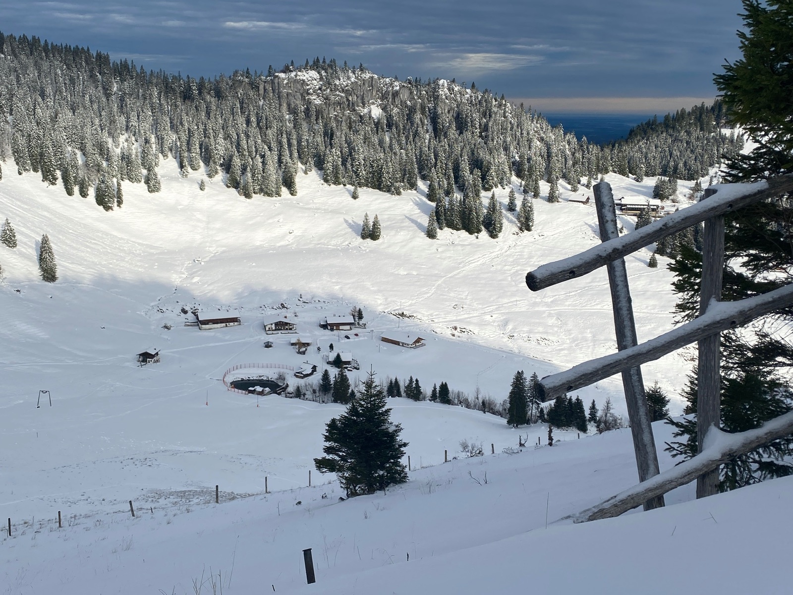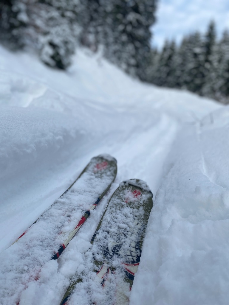 Fazit: Es ging unerwartet gut, bis auf die harschigen Passagen im unteren Teil der Abfahrten. Heute um die 50 Leute unterwegs, Winterwunderlandatmosphäre. Kein nennenswerter Steinkontakt. Wenn es nochmal draufschneit, wird es richtig gut. Jenseits der steinarmen Pisten ist die Schneedecke aber meist noch nicht skitourentauglich.