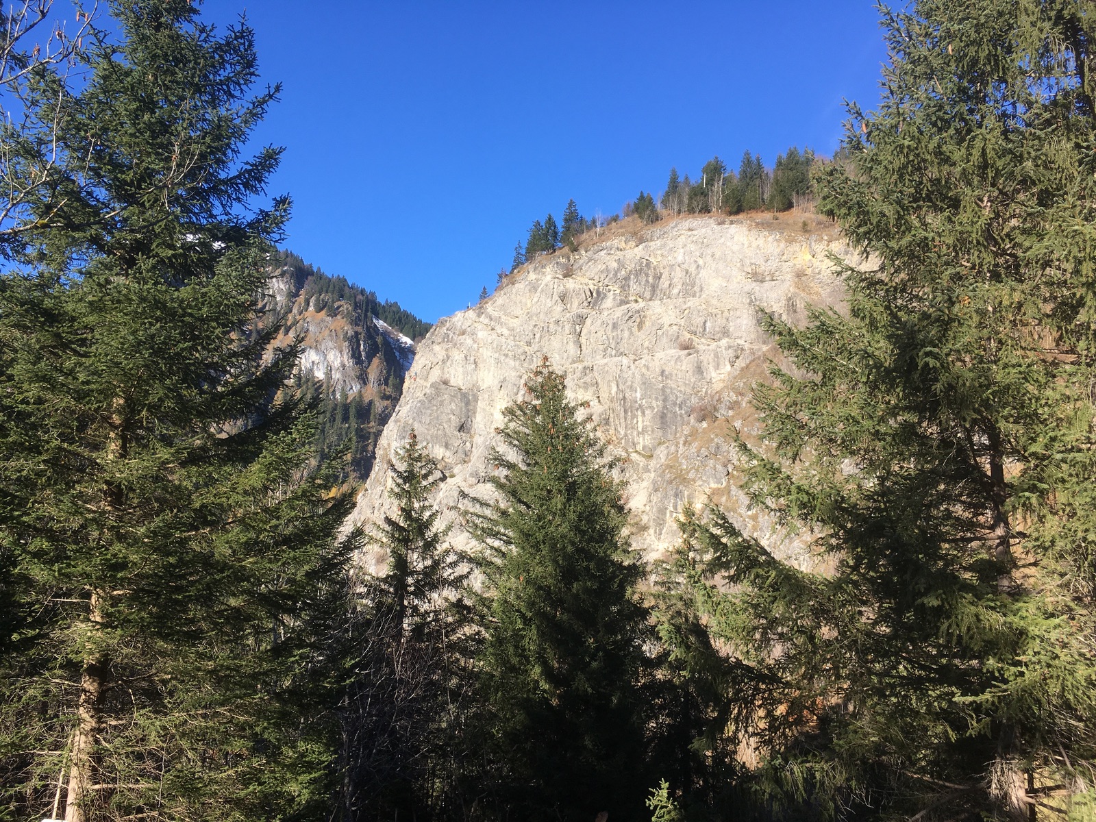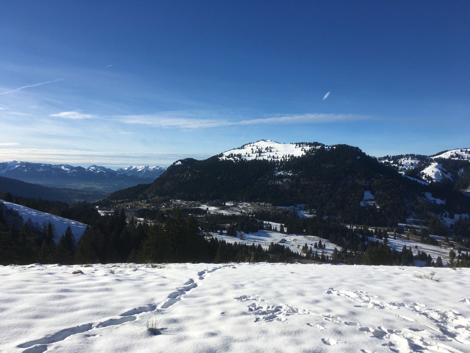 Gestern gab es noch einmal eine Klettersteig-Skitour-Kombination (wenn der Winter nicht so richtig kommt ...). Zunächst der Ostrachtaler Klettersteig am Ortsende von Oberjoch - relativ kurz, zusammen mit dem Zustieg und dem etwas langwierigen Abstieg (eigentlich zunächst ein Aufstieg auf einem Wanderweg) brauchen geübte Klettersteigler keine Stunde.