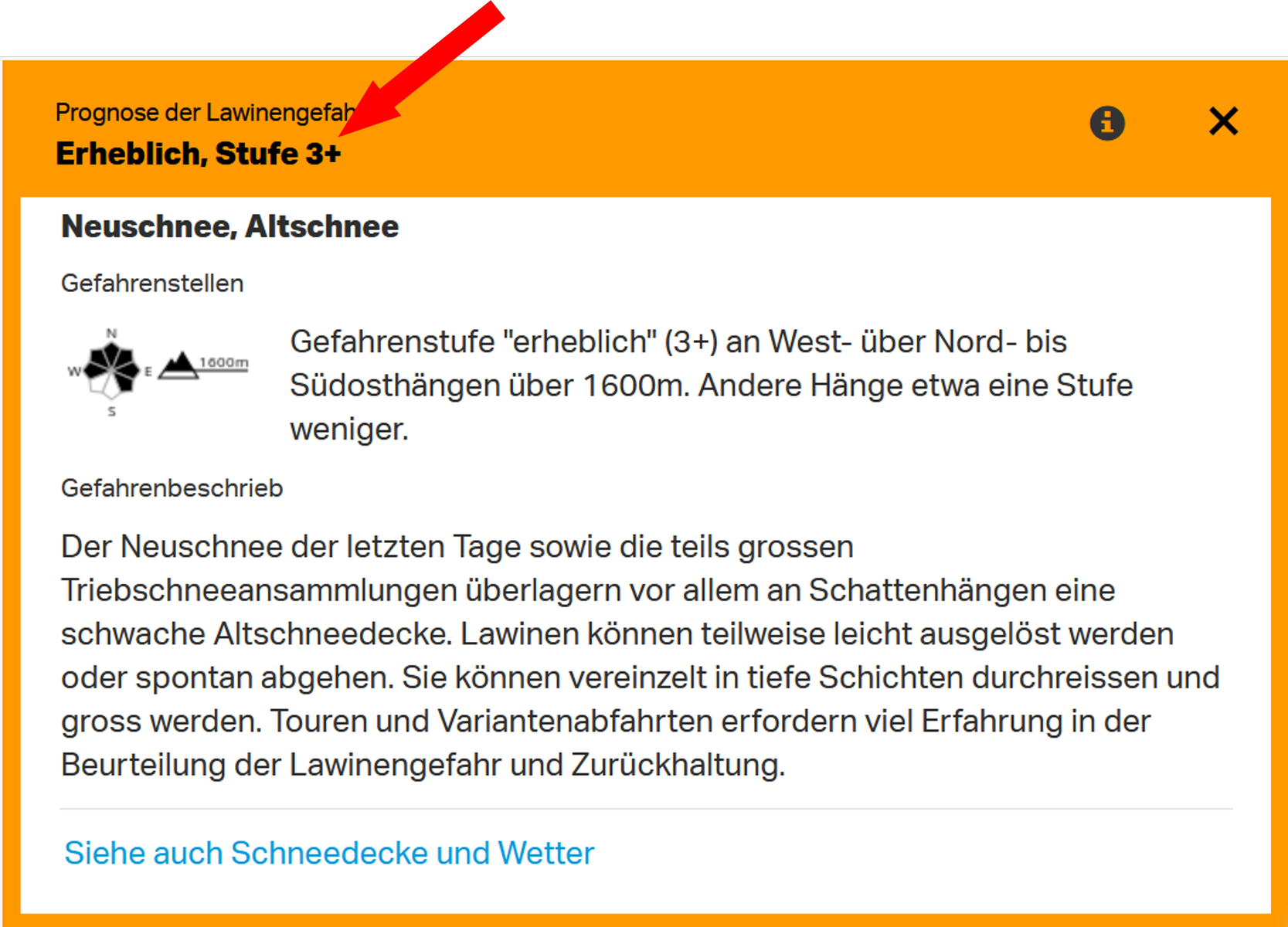Ähnlich wie beim Klettern gibt es in der Schweiz jetzt Gefahrenstufe Plus und Minus - also z.B. einen 3-, das die Gefahrenstufe im unteren Bereich hinweisen. (+) auf den höheren Bereich und ein (=) auf die Mitte.