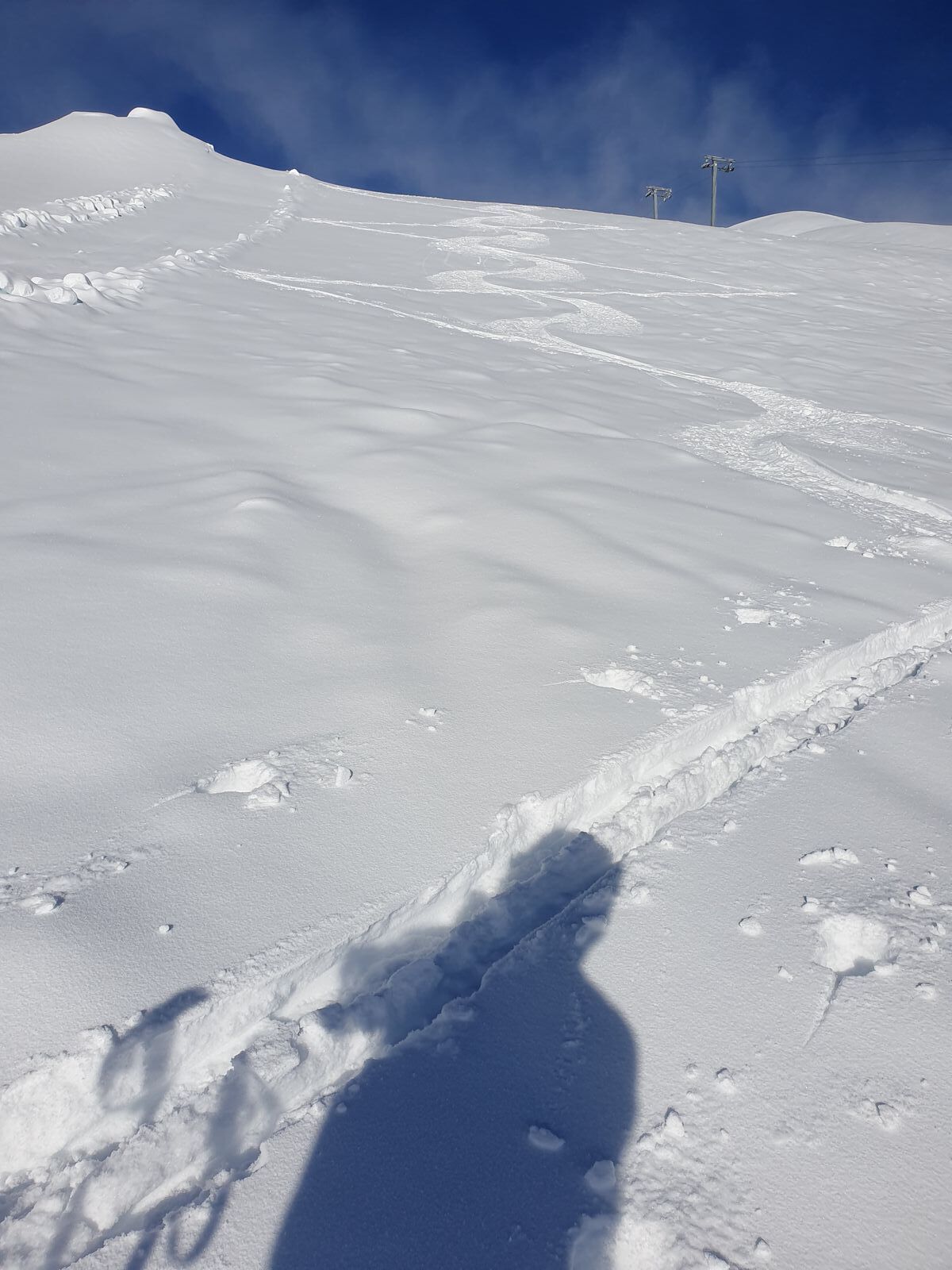 Natürlich nicht überall sehr gut, z.T. auch Kampf mit Schneekanonen-Bruchschnee (mein rechtes Knie leidet jetzt etwas), aber insgesamt viel unverspurter Pulver!
