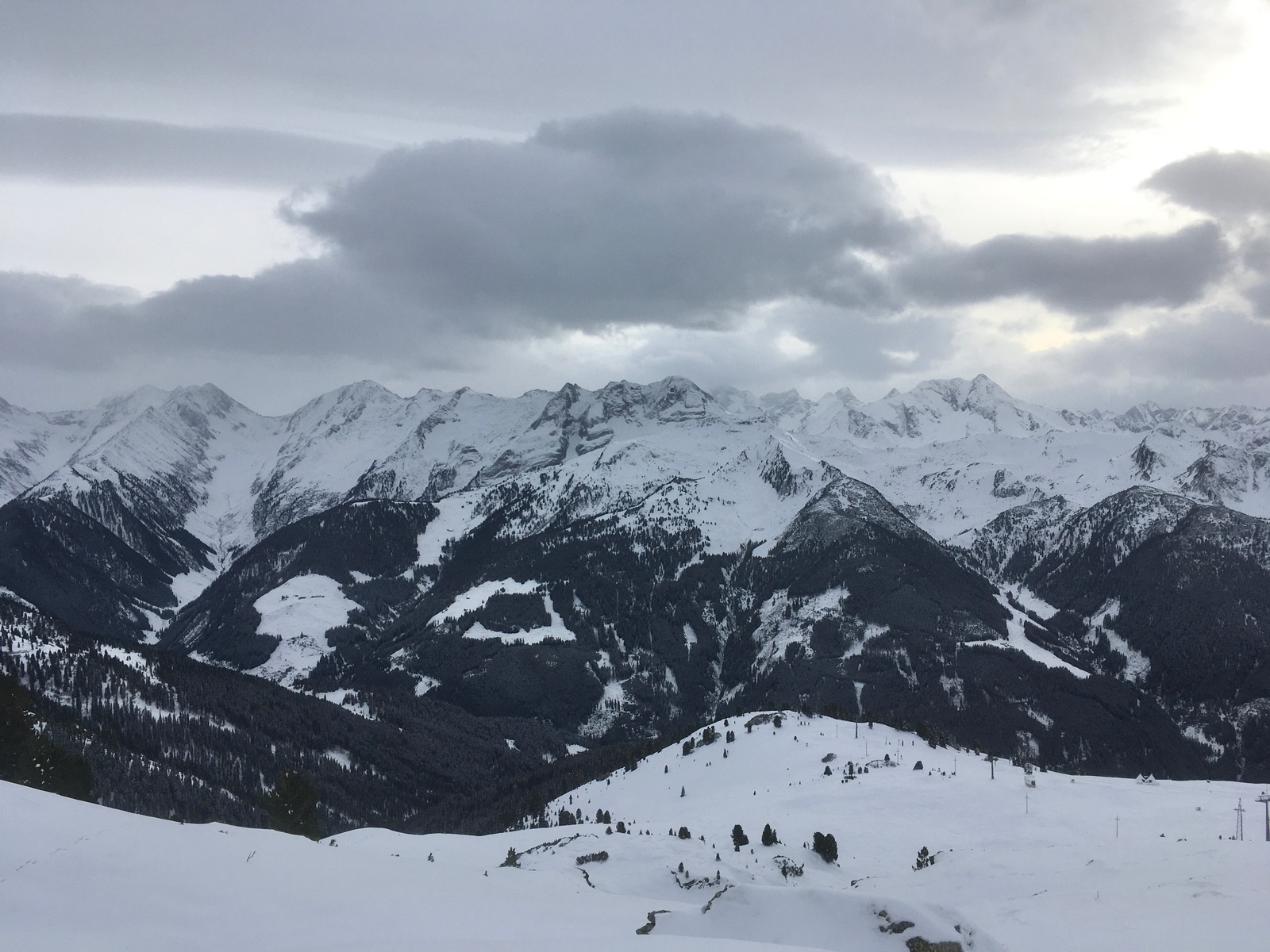 Blick hinüber in die Zillertaler - schön weiß, aber vermutlich nicht skitourengeeignet: