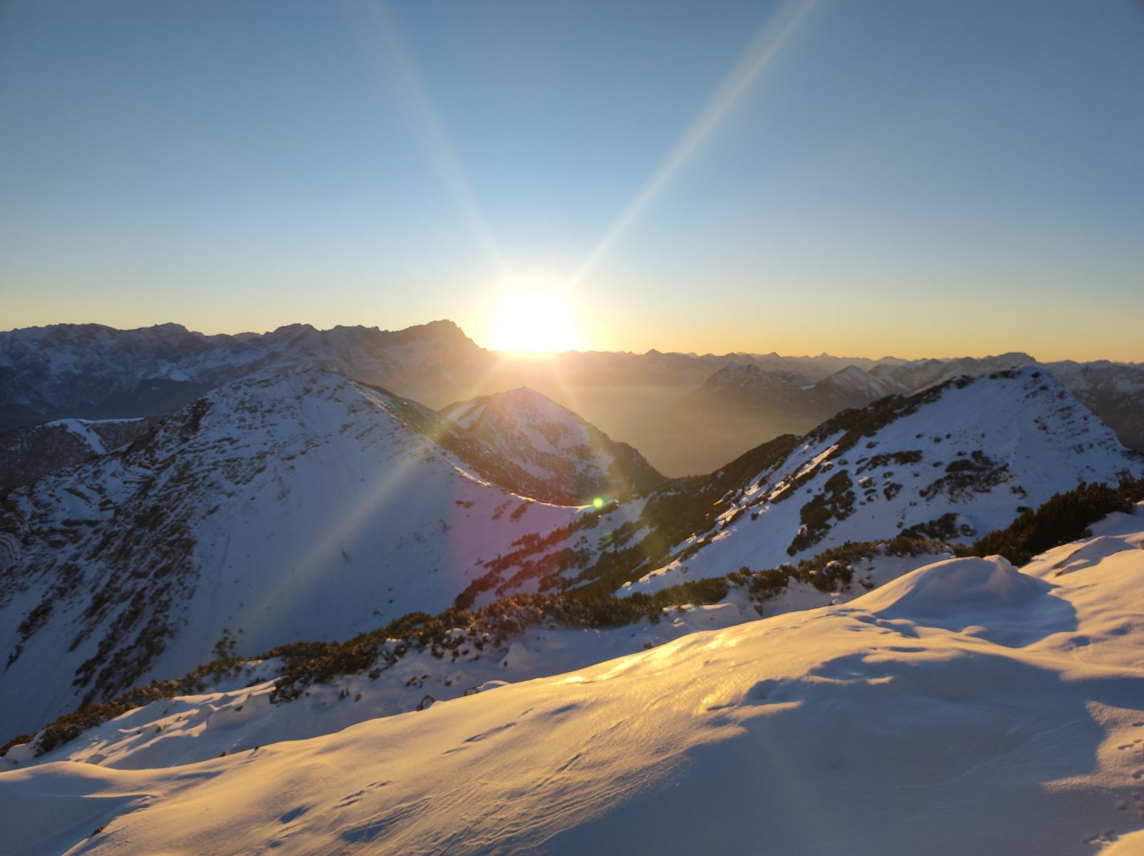 Zum Sonnenuntergang bin ich auf den Risskopf und heute morgen zum -aufgang zum Krottenkopf. Abstieg über die Esterbergalm. Eine tolle Tour!