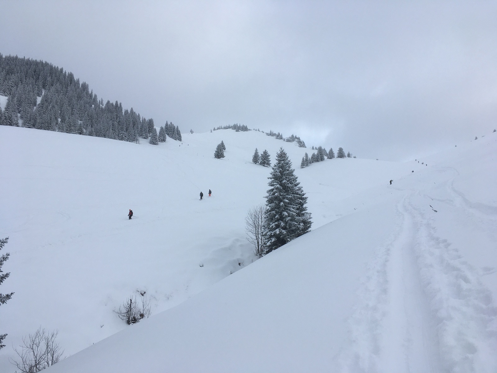 Rauhkopf, dann Abfahrt zur Krottenthal-Alm und schließlich Abfahrt ins Tal nach Geitau (letzteres hatte ich eigentlich nicht geplant).