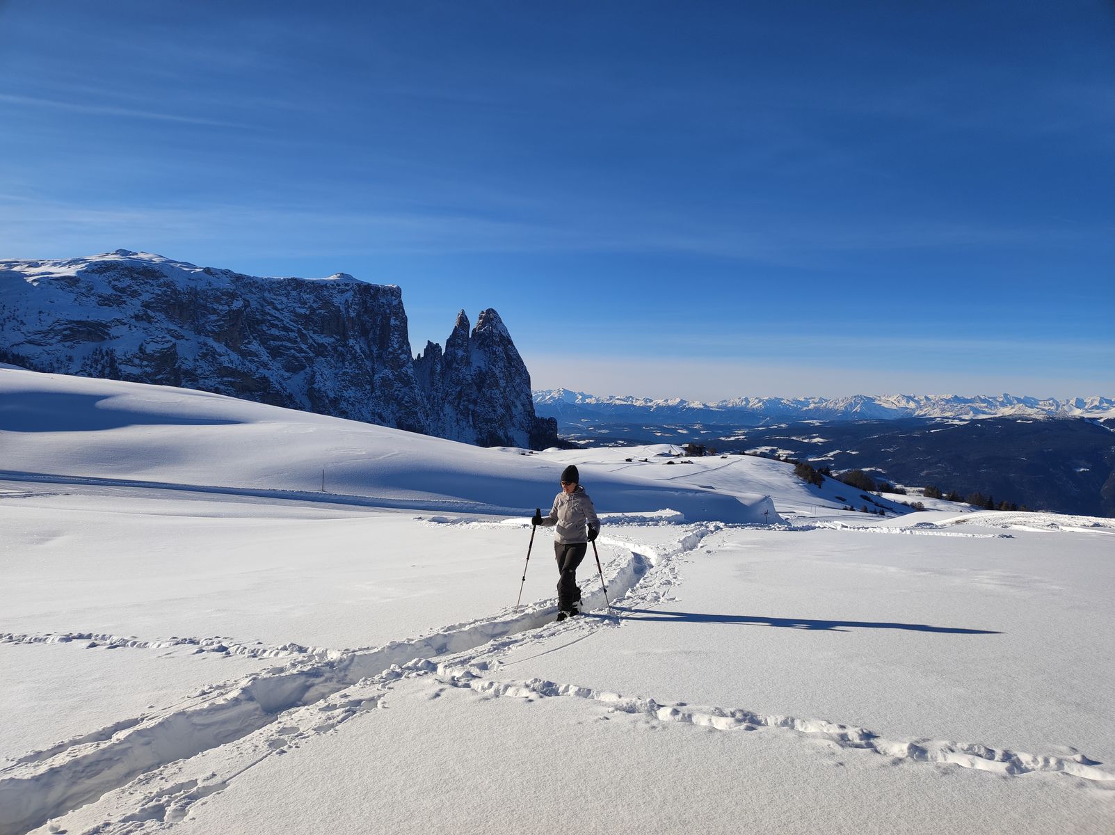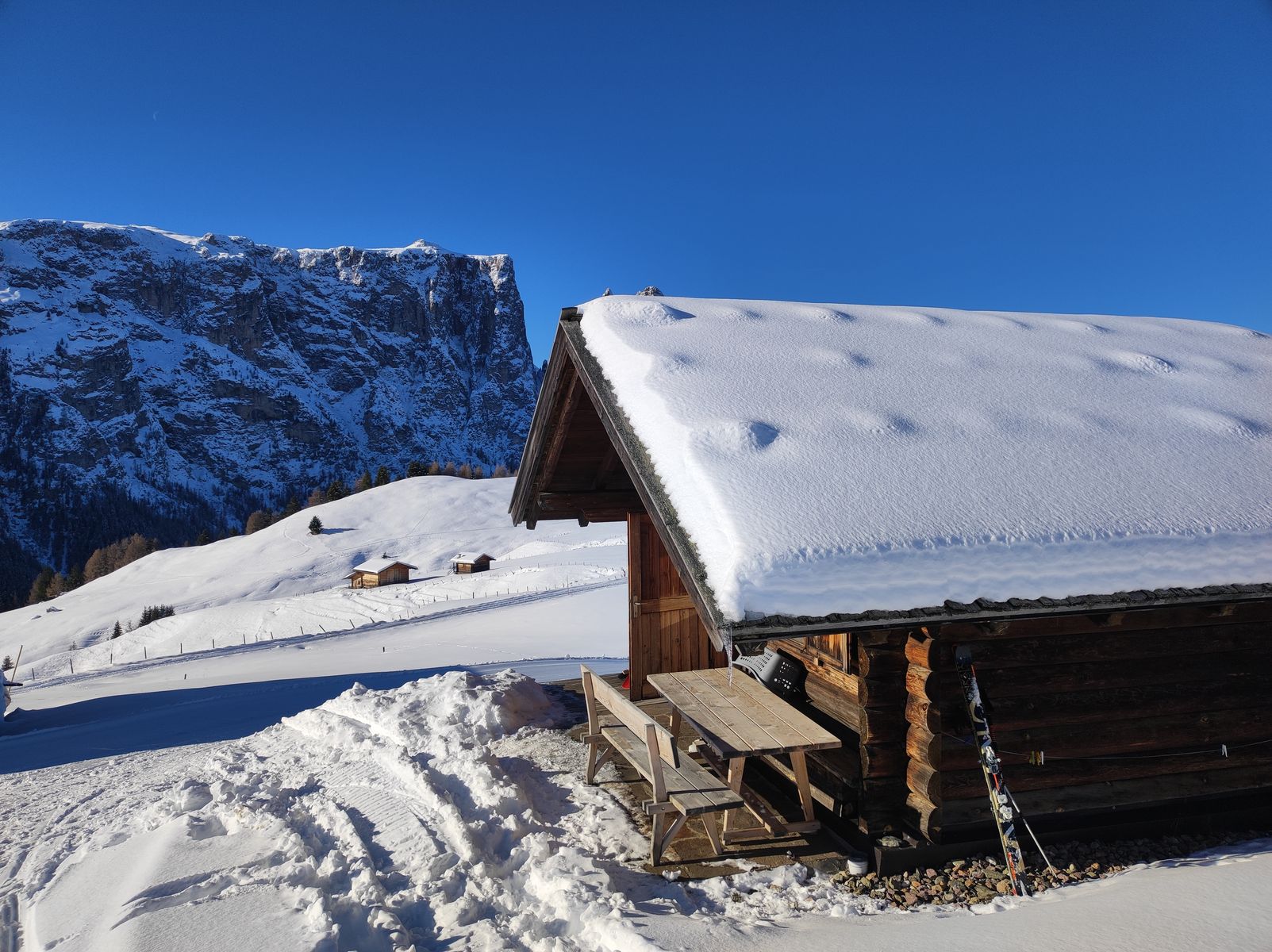 Wir sind zurzeit mit Freunden für einige Tage im Skiurlaub auf der wunderschönen Seiser Alm, wo wir eine Selbstversorger-Hütte gemietet haben.