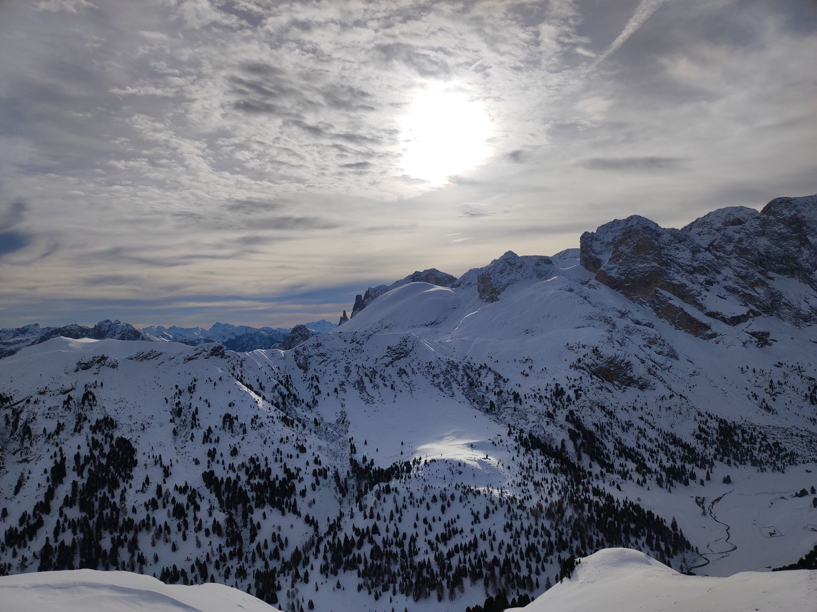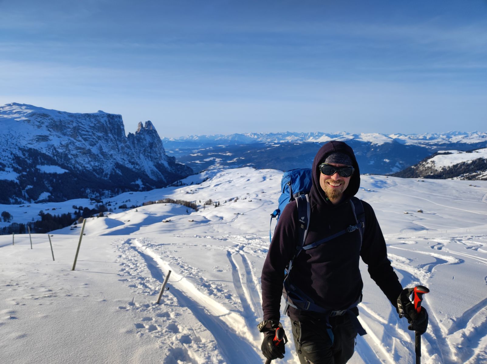 Die anspruchsvolleren Touren im Gebiet wie Plattkofel oder Schlern haben noch zu wenig Schnee - da ist bisher auch noch kein einheimischer wuida Hund hoch.