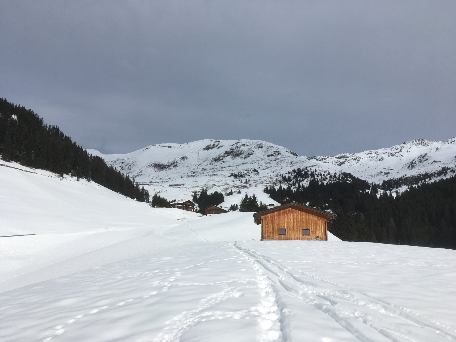 Bei den Almen wäre es wohl sinnvoller gewesen, die untere Almstraße (Richtung Hobalm) zu nehmen - meine Querung weiter oben war nur anstrengender (alles zu spuren) und länger. Auch wenn es von unten nicht so aussieht, kam man dann die Alpenrosenstufe gut mit Skiern hoch. Angesichts der Wärme, der südseitigen Exposition sowie der geringen Schneelage ist - wie auch im Übrigen auf der Tour - natürlich die Frage, wie lange das noch geht. Da wage ich lieber keine Prognose.