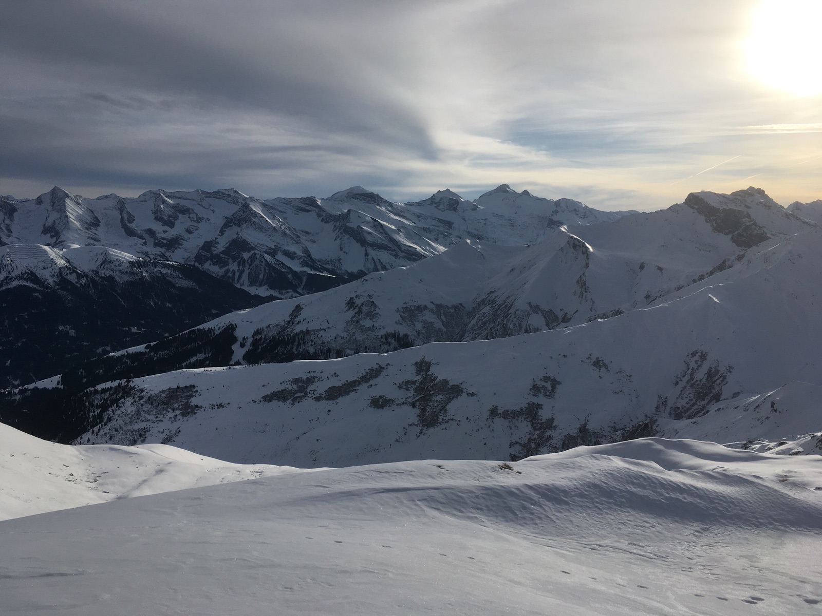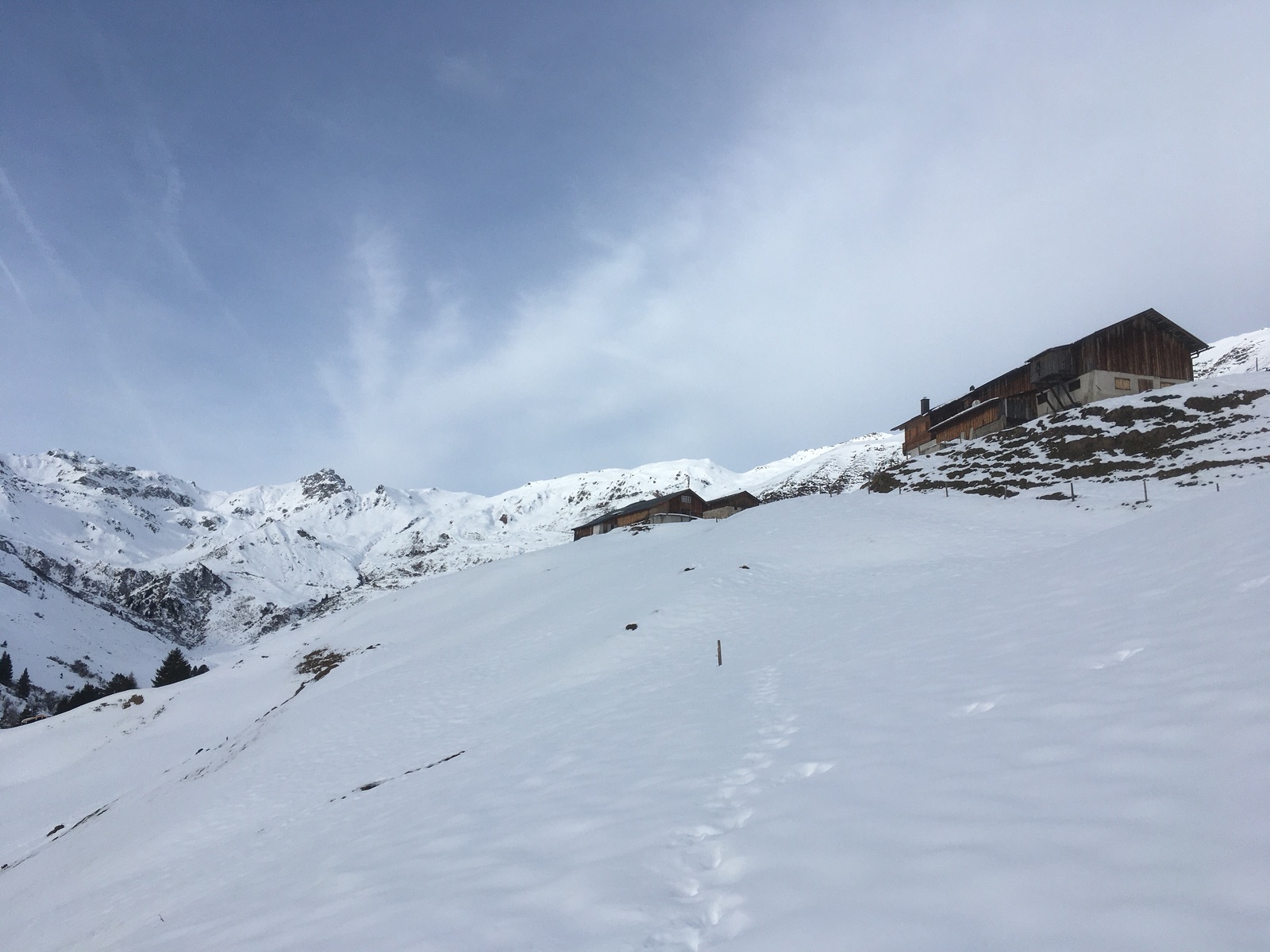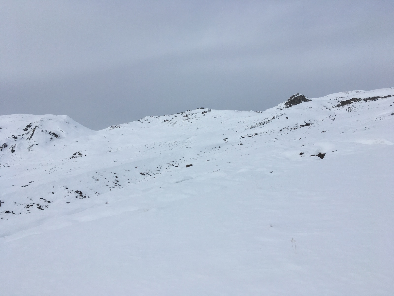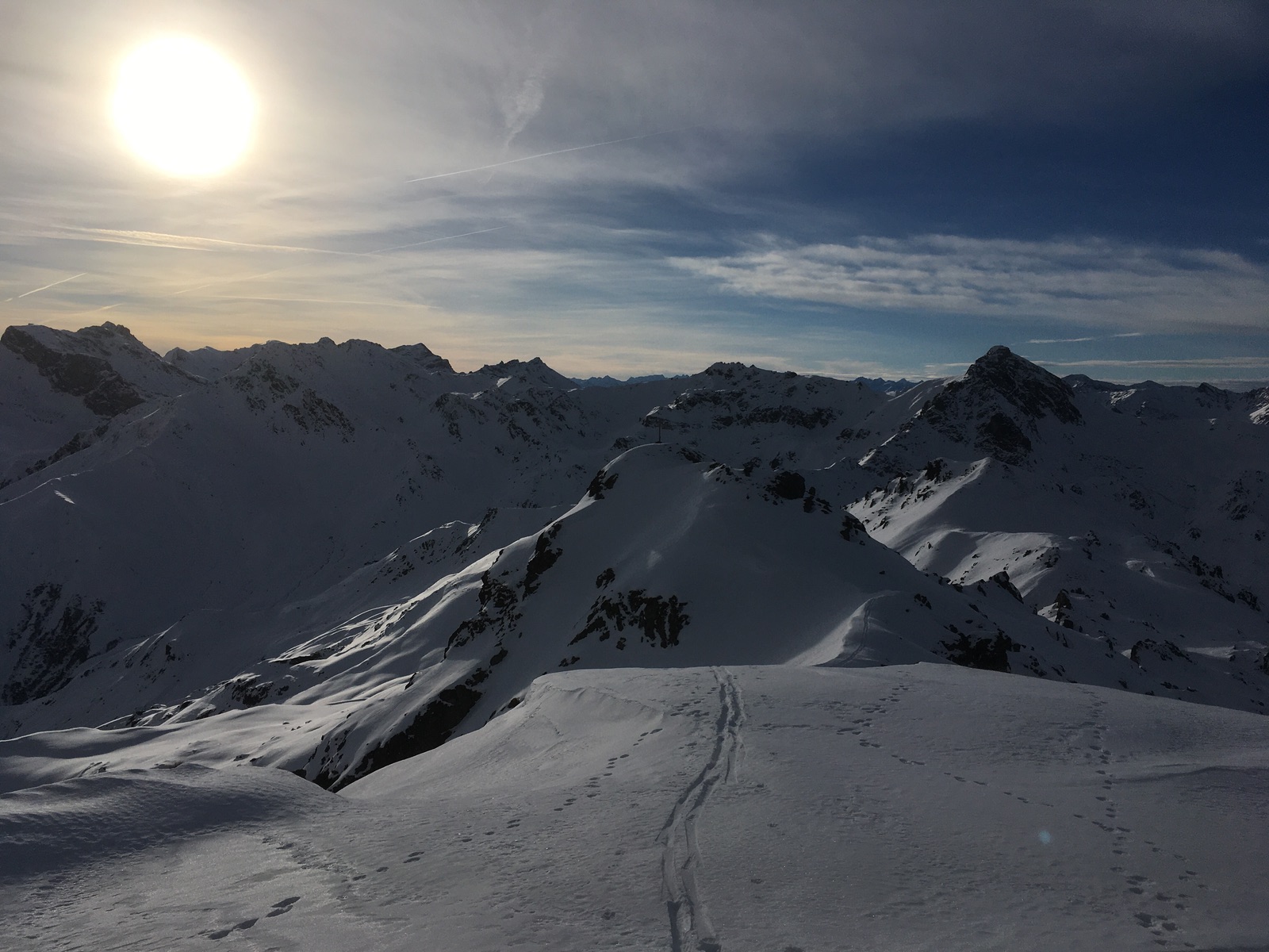 Sieht wunderbar aus und wäre auch tolles Skigelände, aber Vorsicht bei der Abfahrt angesichts nur dünn eingeschneiter Felsen: