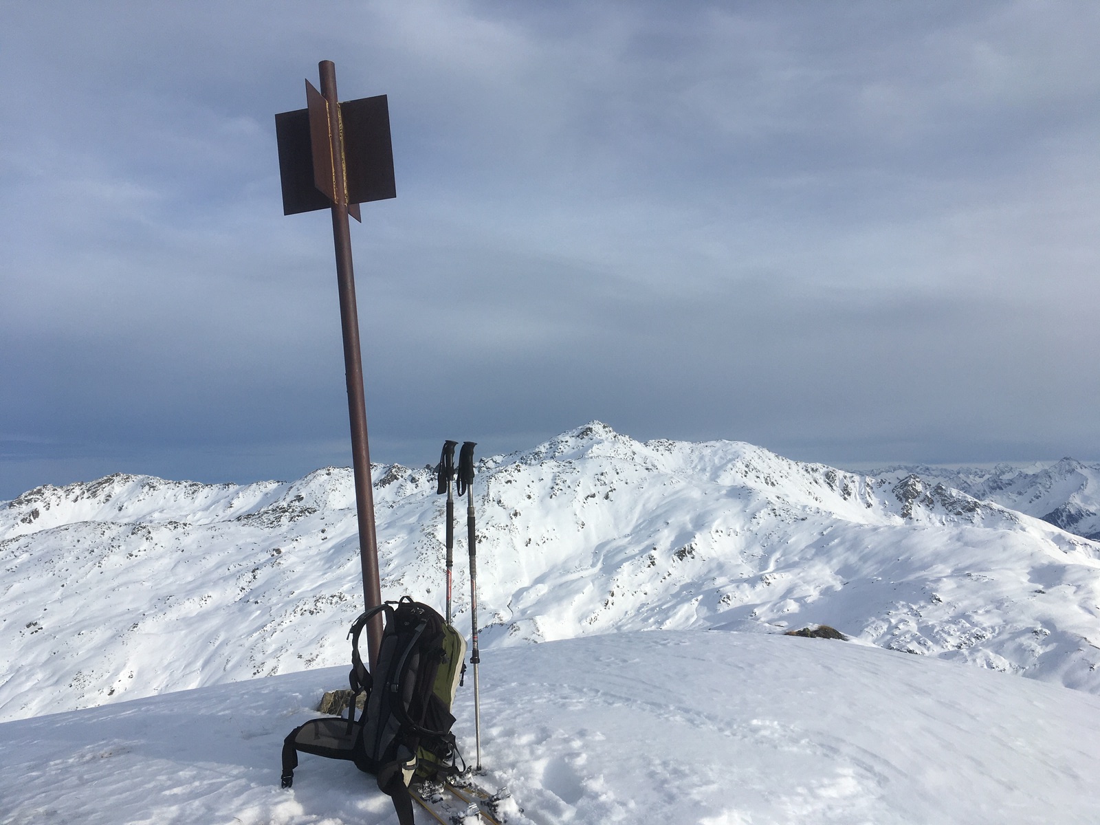 Einfach nur schön, der Blick vom Gipfelkreuz zur Gipfelstange: