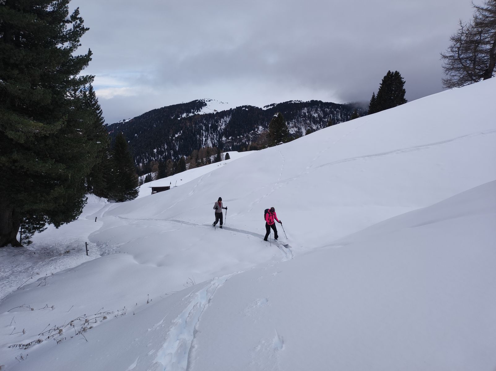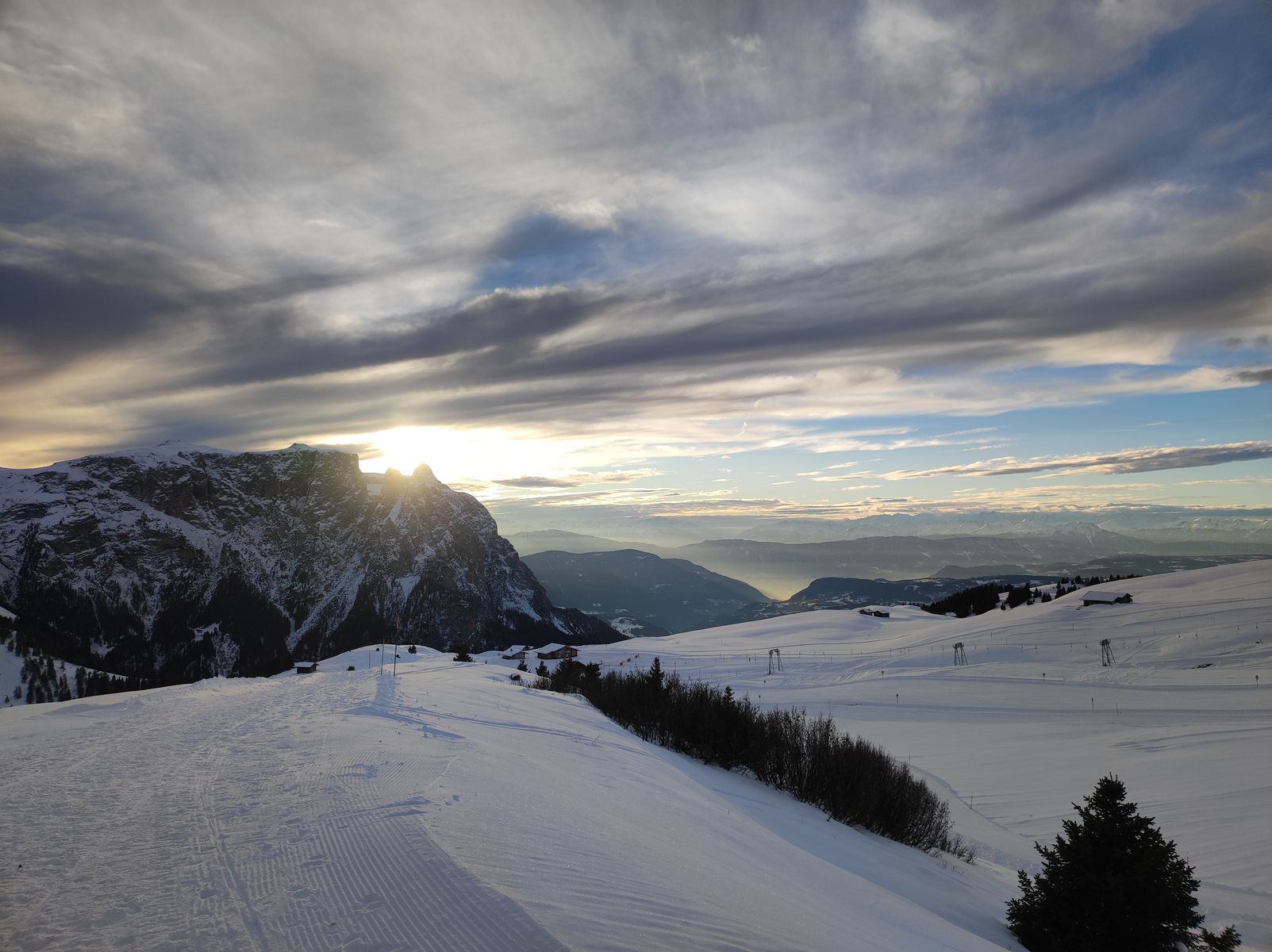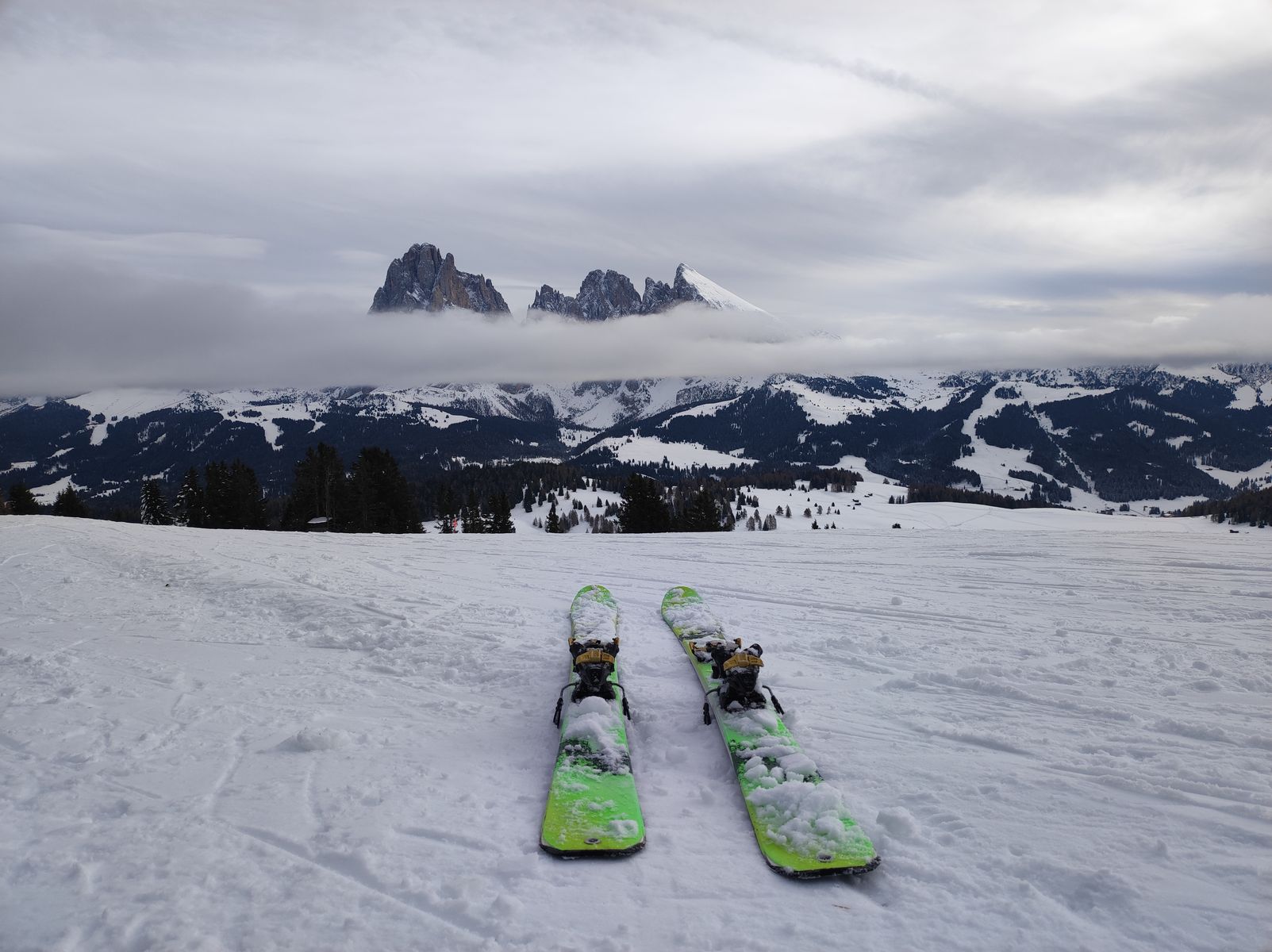 Die oben genannten Gipfel sind zwar alle mit Seilbahnen erschlossen, lassen sich aber dennoch auch auf ruhigen Routen im Gelände ersteigen, was wir auch gemacht haben. Abgefahren sind wir aber aufgrund der Schneeverhältnisse auf Pisten.