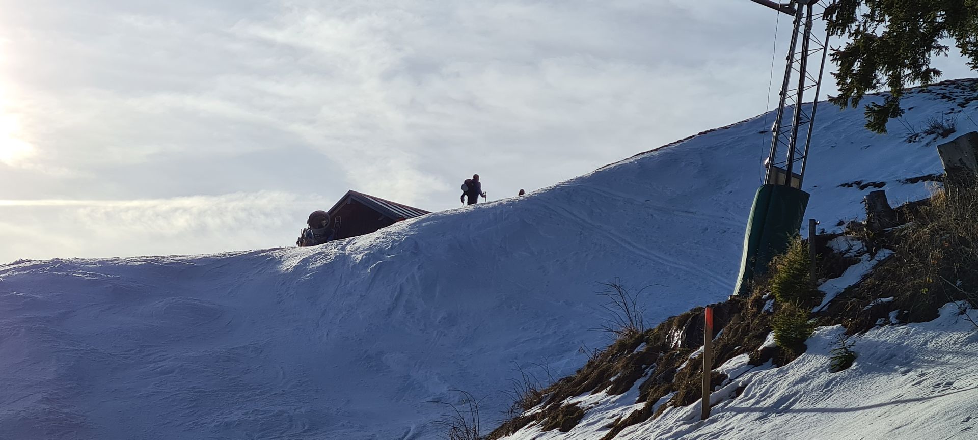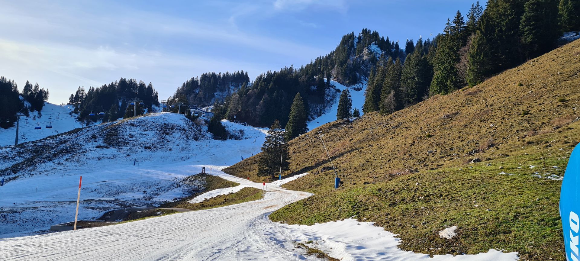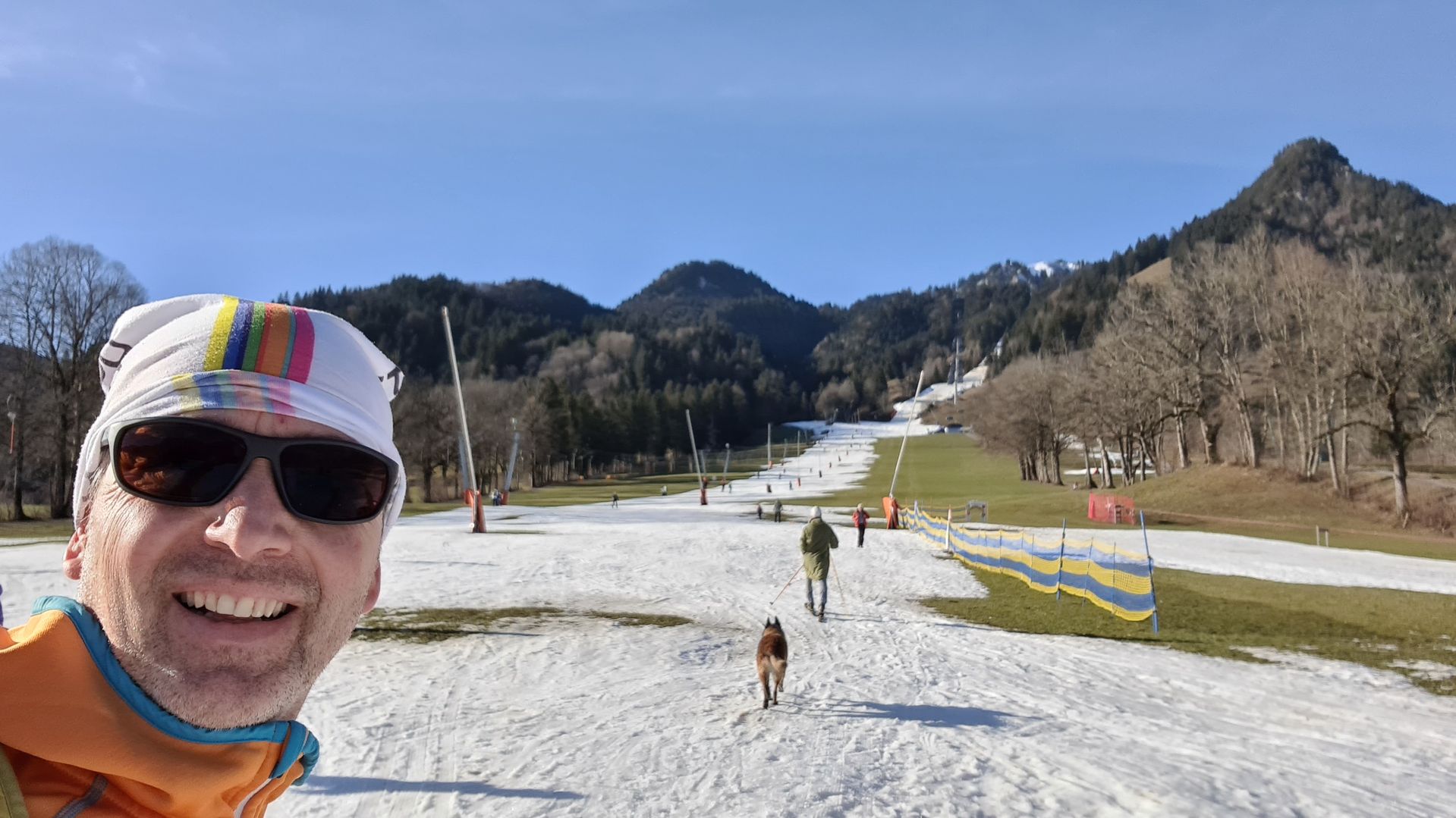 Verhältnisse: Zumindest in der unteren Hälfte liegt neben der Piste NULL Schnee. Der Schlepplift unten (Draxlhang) läuft und es gibt nur ein schmales, aber immer noch ausreichendes Band zum Skifahren. Für den Aufstieg ausreichend Schnee; bei der Abfahrt ist der Gipfelbereich nur ein Durchwursteln, bzw. man trägt ein Stück. Ansonsten ist die Piste gut gepflegt, am Nachmittag kamen aber in der unteren Hälfte schon ein paar braune Stellen durch - aber vielleicht wird das bis morgen ja wieder präpariert. Lang geht das freilich nicht mehr bei diesen Temperaturen.