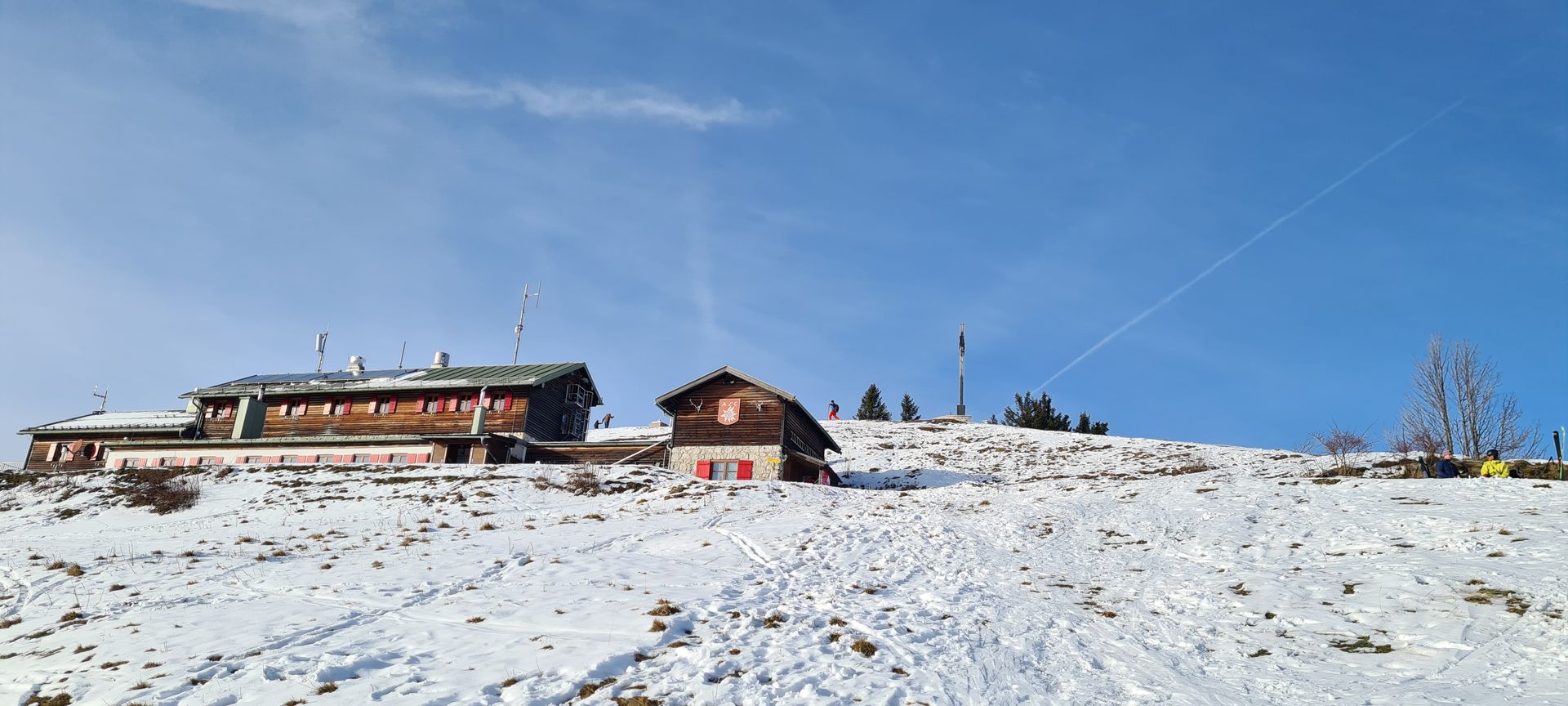 Ich vermute, dass es am frühen Morgen ziemlich hart war. Ich bin erst gegen Mittag los, da war es angenehm aufgefirnt. Einzig kurz vor der Bergwachthütte, im schattigen Steilhang, war es bisserl eisig.